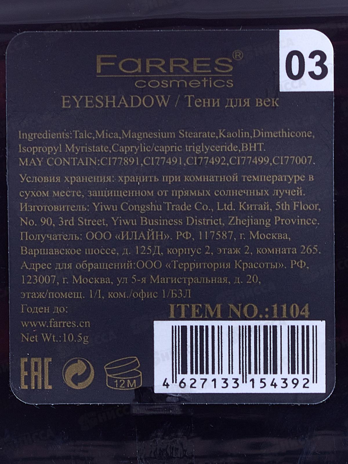 Farres Тени для век 1104-03 (YF014) 6 цветов перламутровые *12