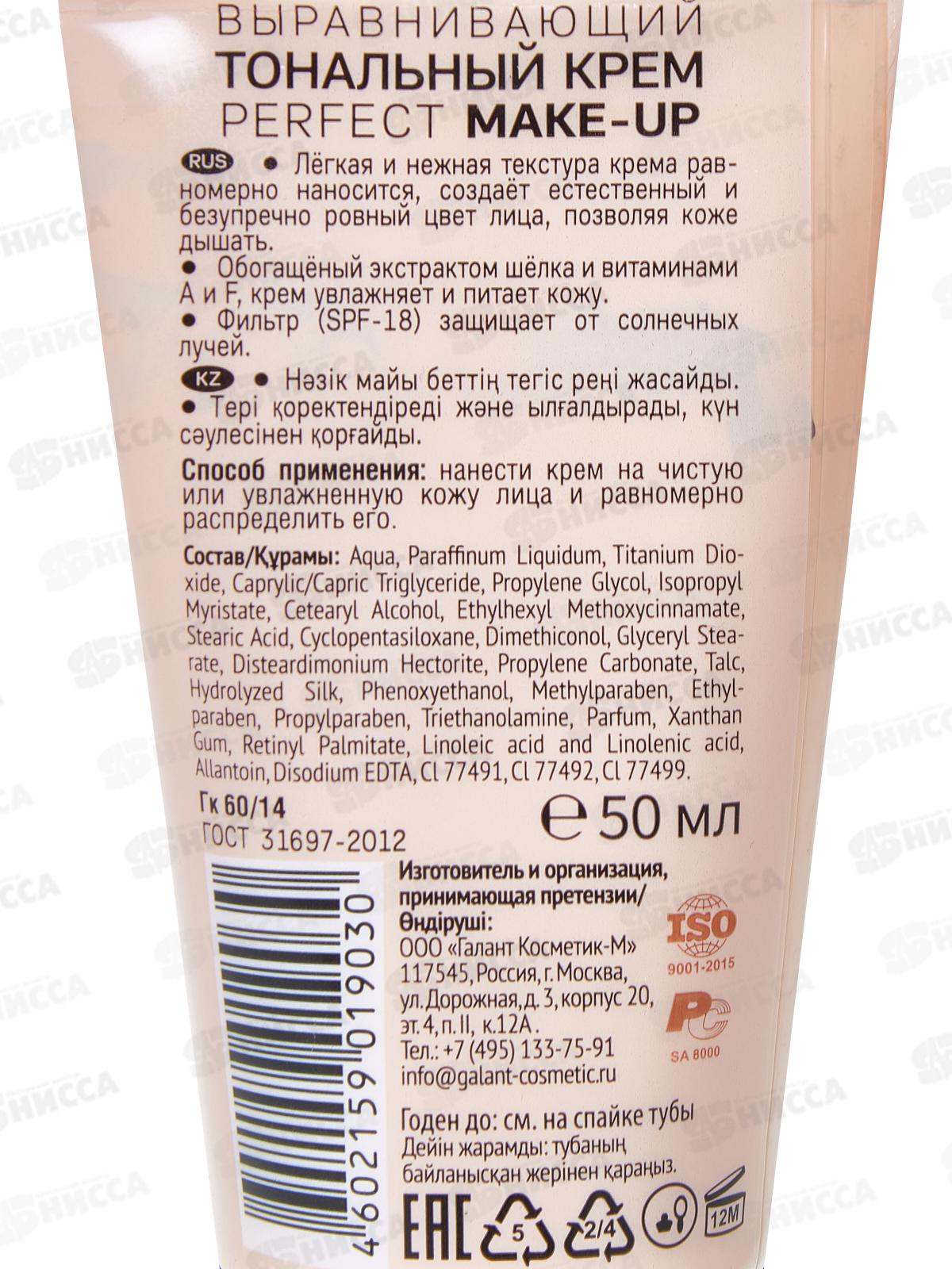 Тональный крем Galant visage Perfect make-up, тон № 4 (теплый бежевый). Лёгкая и нежная текстура создаёт естественный цвет лица, скрывает недостатки кожи, при этом не забивая поры. Экстракт шёлка и витамины А и F увлажняют и питают кожу. Солнцезащитный фактор SPF 18 обеспечивает защиту от ультрафиолета и свободных радикалов, препятствуя преждевременному старению кожи.