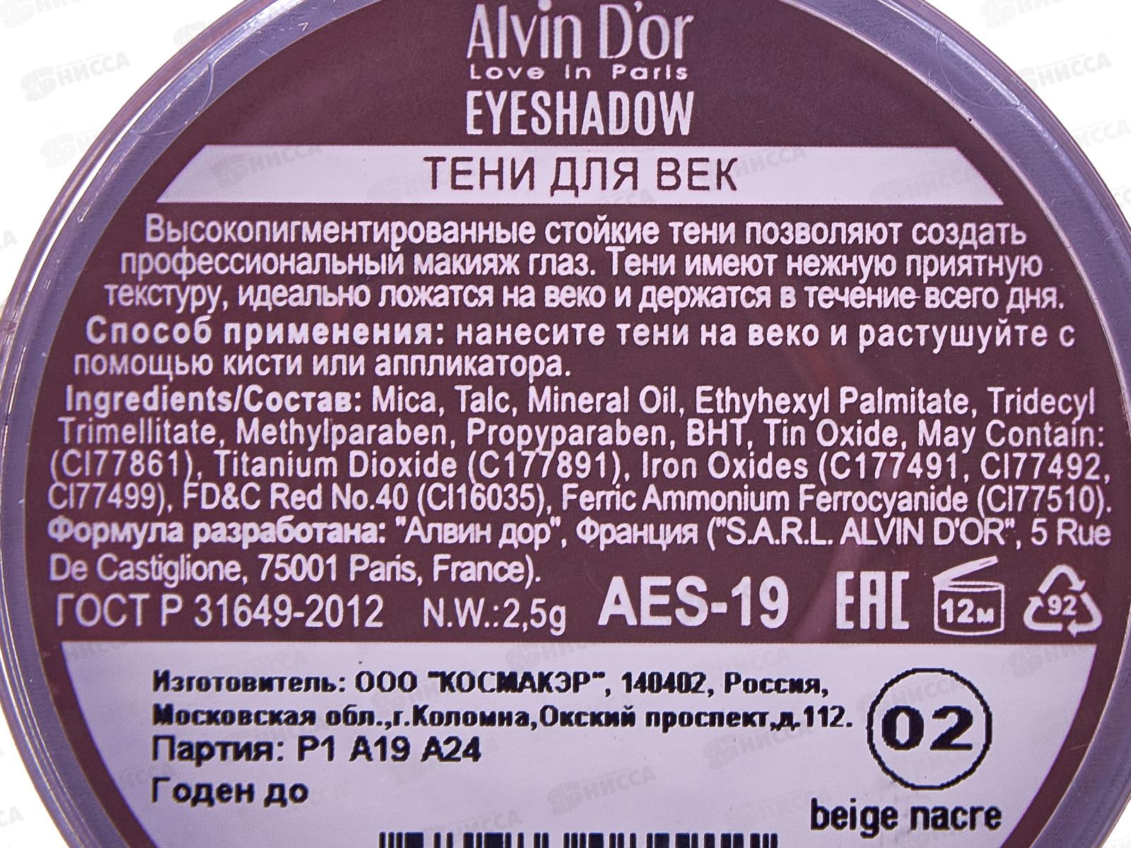 Алвин Дор тени для век AES-19 Bold Eyes №02 Жемчужный беж