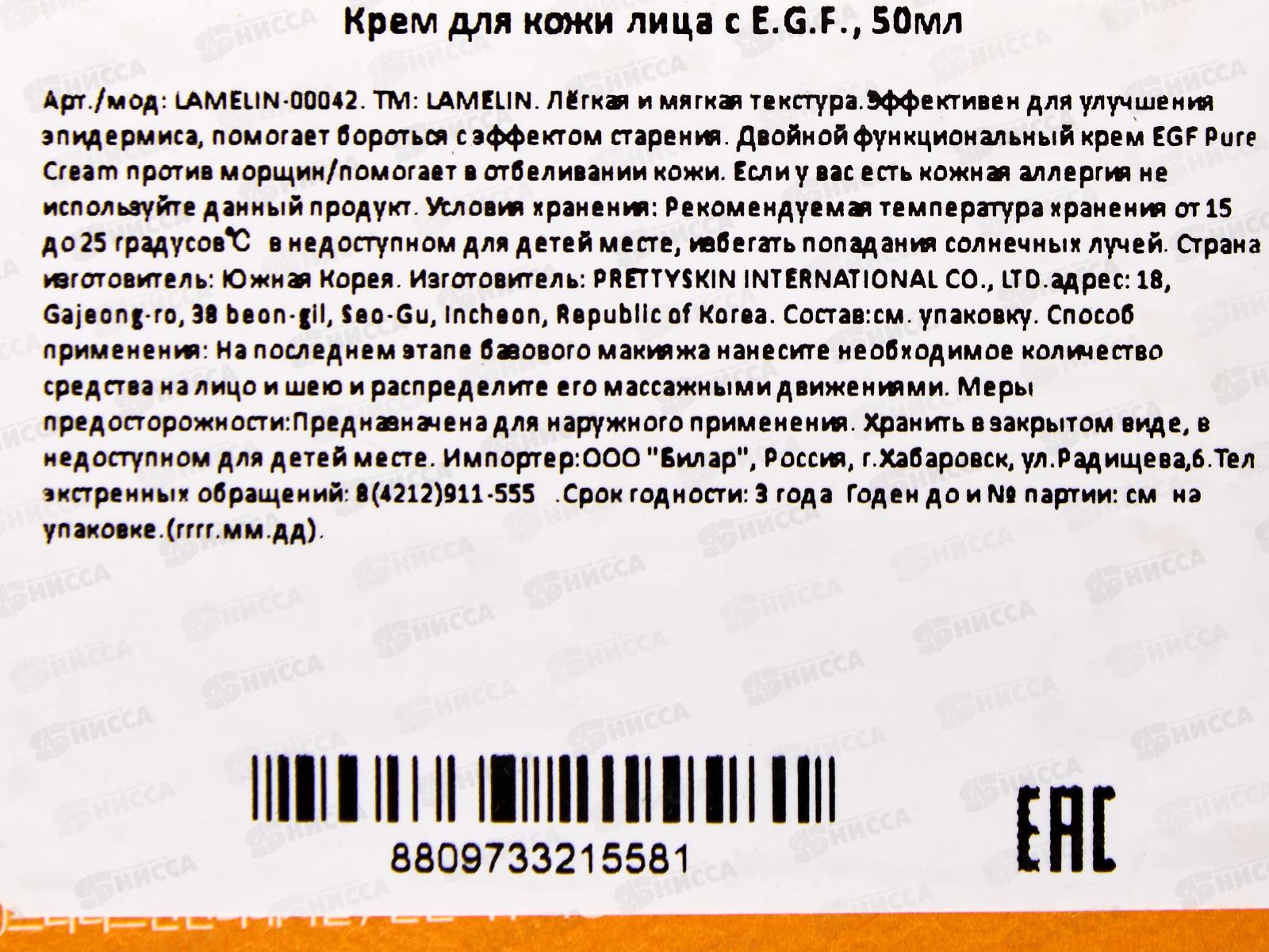 Lamelin E.G.F. Крем для лица регенирирующий питание 50мл *80