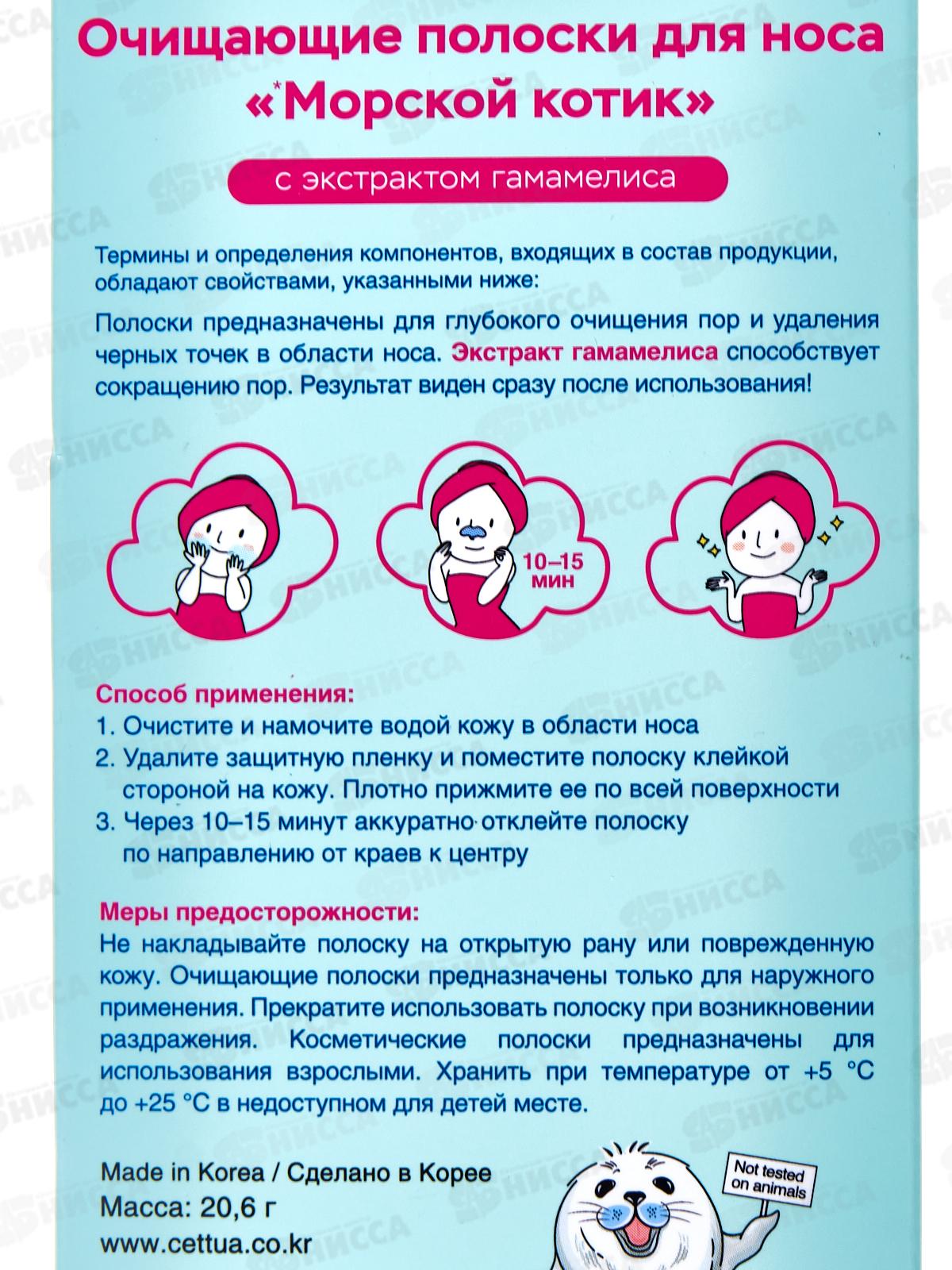 CETTUA Полоски д/носа очищающие "Морской котик"