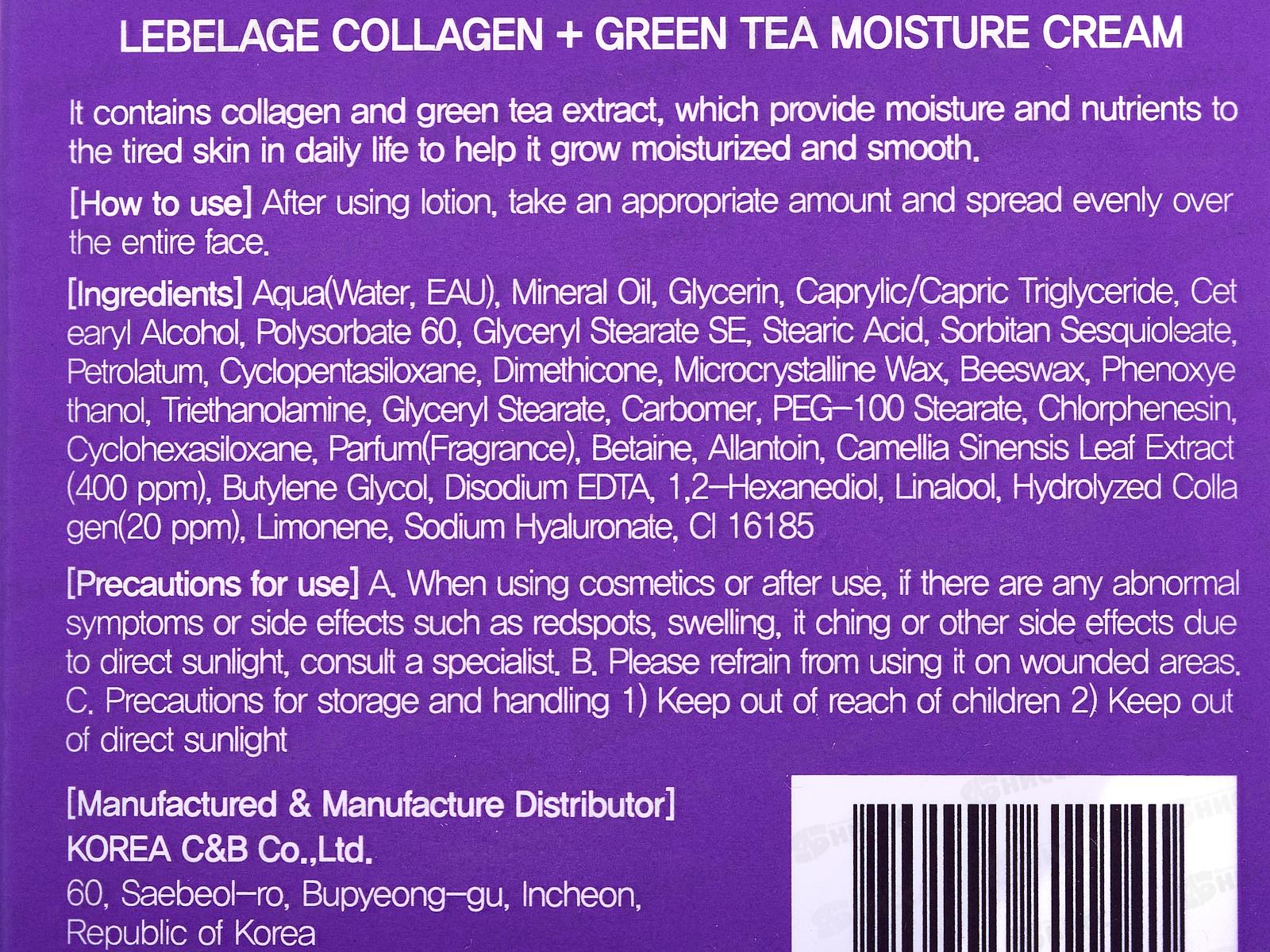 Lebelage крем для лица питат коллаг Зеленый чай 70мл *50