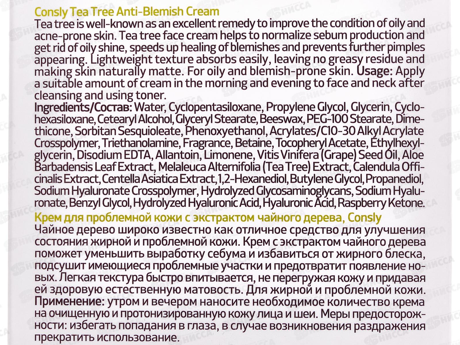 Consly Крем для проблемной кожи с экстракт чайного дерева 70мл