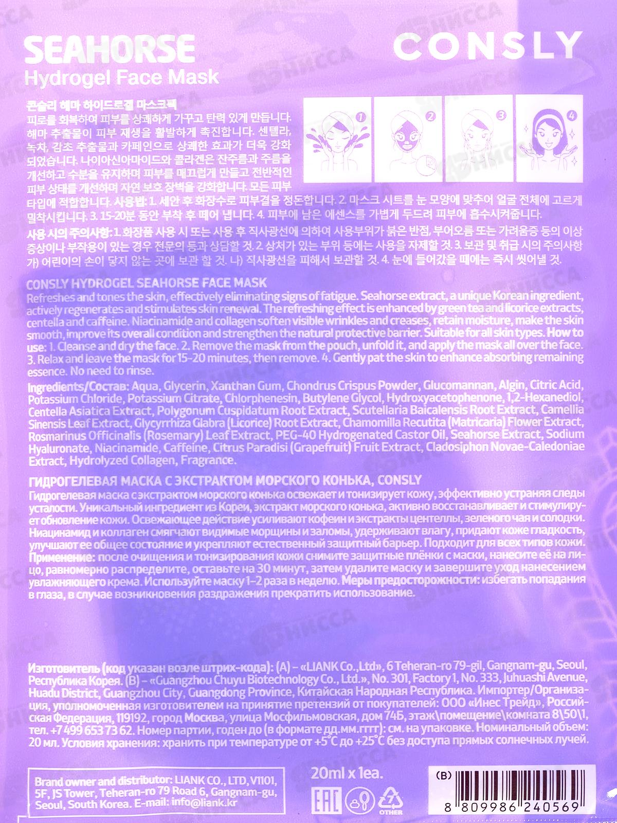 Consly Маска гидрогелевая с экстрактом морского конька 20мл