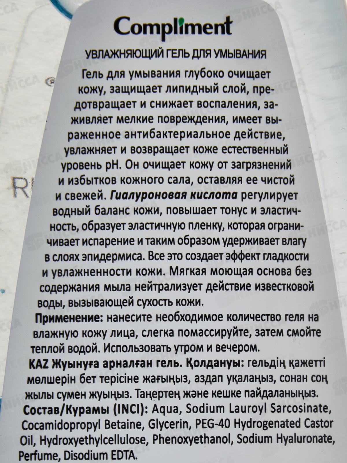 КОМПЛИМЕНТ Гель для умывания УВЛАЖНЯЮЩИЙ с гиалуроновой кислотой 250мл *8
