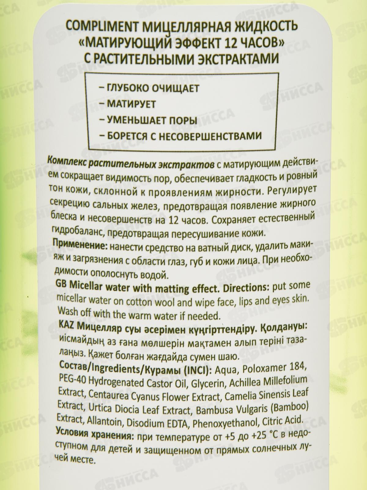 КОМПЛИМЕНТ Мицеллярная жидкость матирующий эффект 12 час 200мл *15