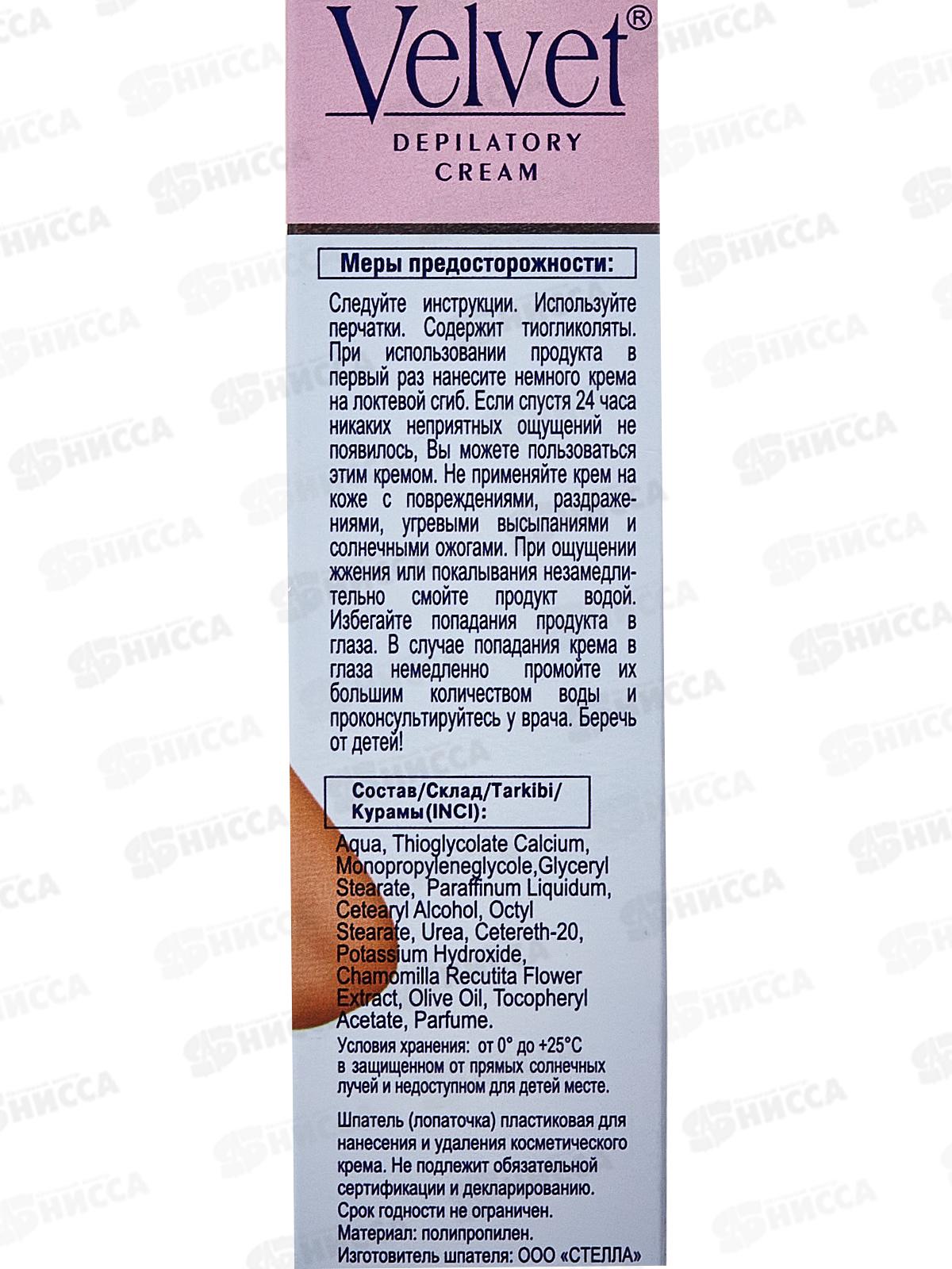 ВЕЛЬВЕТ Депилятор 100мл для чувствительной кожи *16