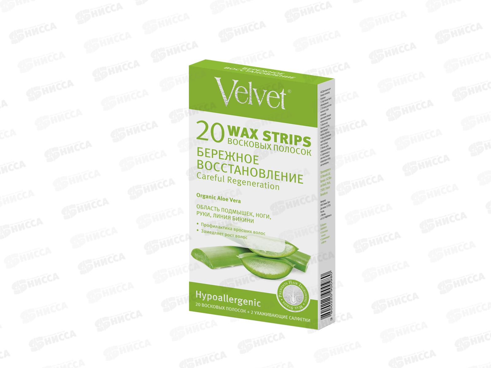 ВЕЛЬВЕТ Восковые полоски для чувствительной и сухой кожи. 20шт *24