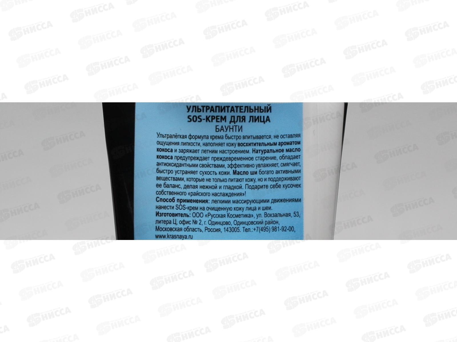 Крем для лица Особая серия "Ультрапитательный SOS - крем. Баунти", 75 мл. Ультралёгкая формула крема быстро впитывается, не оставляя ощущения липкости, наполняет кожу восхитительным ароматом кокоса и заряжает летним настроением. Натуральное масло кокоса предупреждает преждевременное старение, обладает антиоксидантными свойствами, эффективно увлажняет, смягчает, быстро устраняет сухость кожи. Масло ши богато активными веществами, которые не только питают кожу, но и поддерживают ее баланс, делая нежной и гладкой.