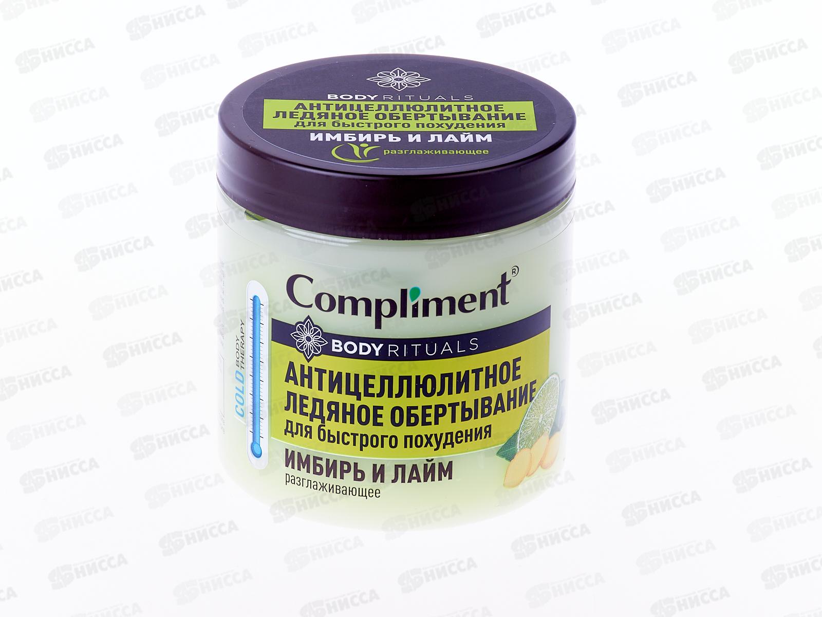 Антицеллюлитное ледяное обертывание, имбирь и лайм Compliment Body Rituals. Криообертывание усиливает отток лимфы из тканей, что способствует снятию отечности, улучшает микроциркуляцию, выводит лишнюю жидкость из организма. Воздействие холода стимулирует процессы регенерации в тканях, благодаря чему повышается тонус кожи. Кожа становится подтянутой и упругой. Кроме того, для согревания, организм начинает активно расщеплять жиры. Благодаря усиленному теплообмену, криотерапия способствует потере веса и избавлению от целлюлита. Вытяжка из корня имбиря стимулирует кровообращение, активирует дренаж и детокс, тонизирует кожу в области воздействия. Экстракт лайма ускоряет уменьшение объемов тела, выравнивает поверхность кожи, избавляя от апельсиновой корки. Применение: нанесите средство плотным слоем на зону коррекции, укройте пленкой и теплым пледом, подождите 15-20 минут. Остатки средства смойте теплой водой без применения мыла. Воздействие температур позволяет активизировать процесс высвобождения и впитывания активных компонентов средства и повысить его эффективность.