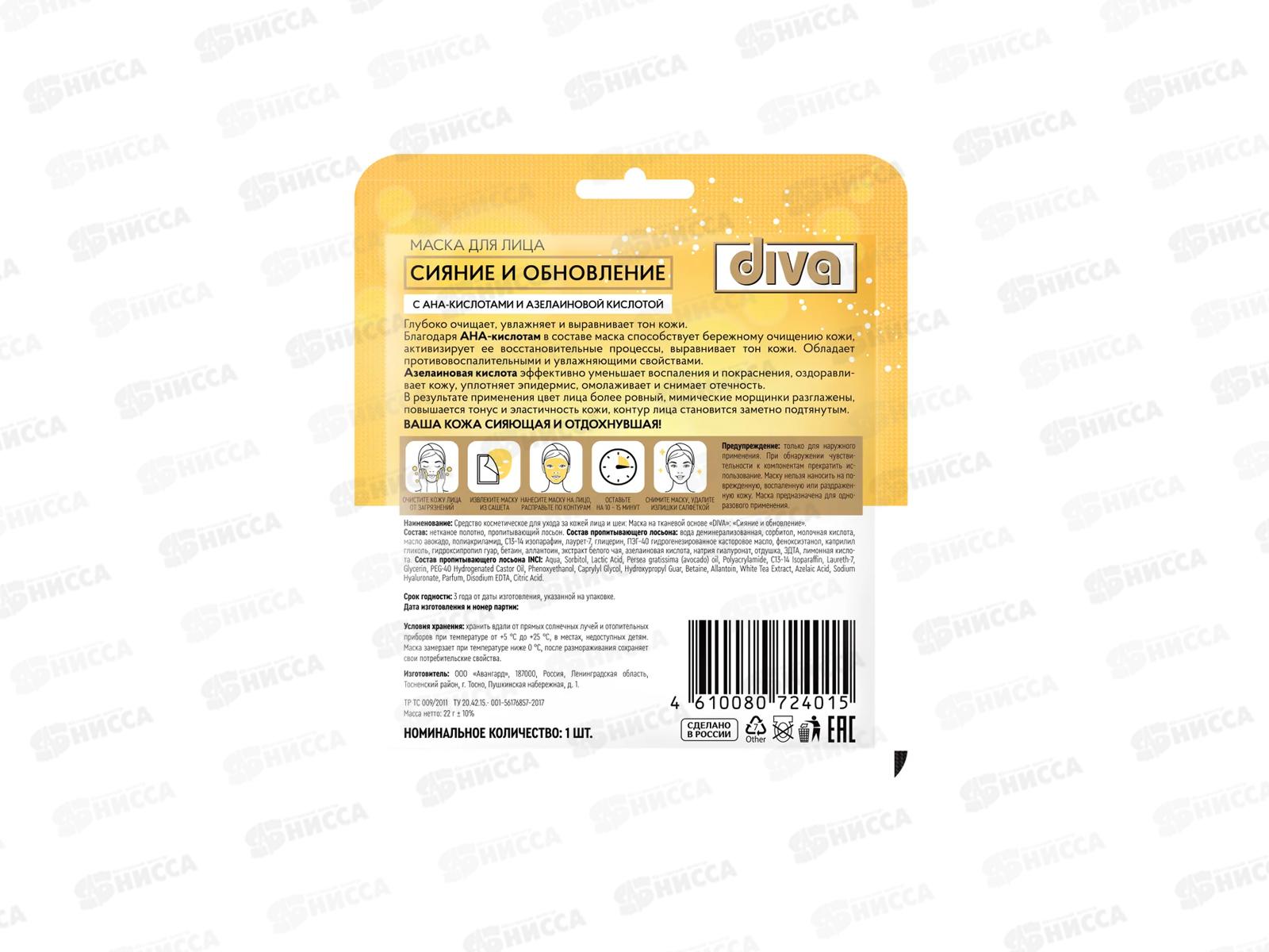 Маска для лица "Сияние и обновление" с АНА-кислотами и азелаиновой кислотой. Глубоко очищает, увлажняет и выравнивает тон кожи. Благодаря АНА-кислотам в составе маски способствует бережному очищению кожи, активизирует ее восстановительные процессы, выравнивает тон кожи. Обладает противовоспалительными и увлажняющими свойствами. Азелаиновая кислота эффективно уменьшает воспаления и покраснения, оздоравливает кожу, уплотняет эпидермис, омолаживает и снимает отечность. В результате применения цвет лица более ровный, мимические морщины разглажены, повышается тонус и эластичность кожи, контур лица становится заметно подтянутым.