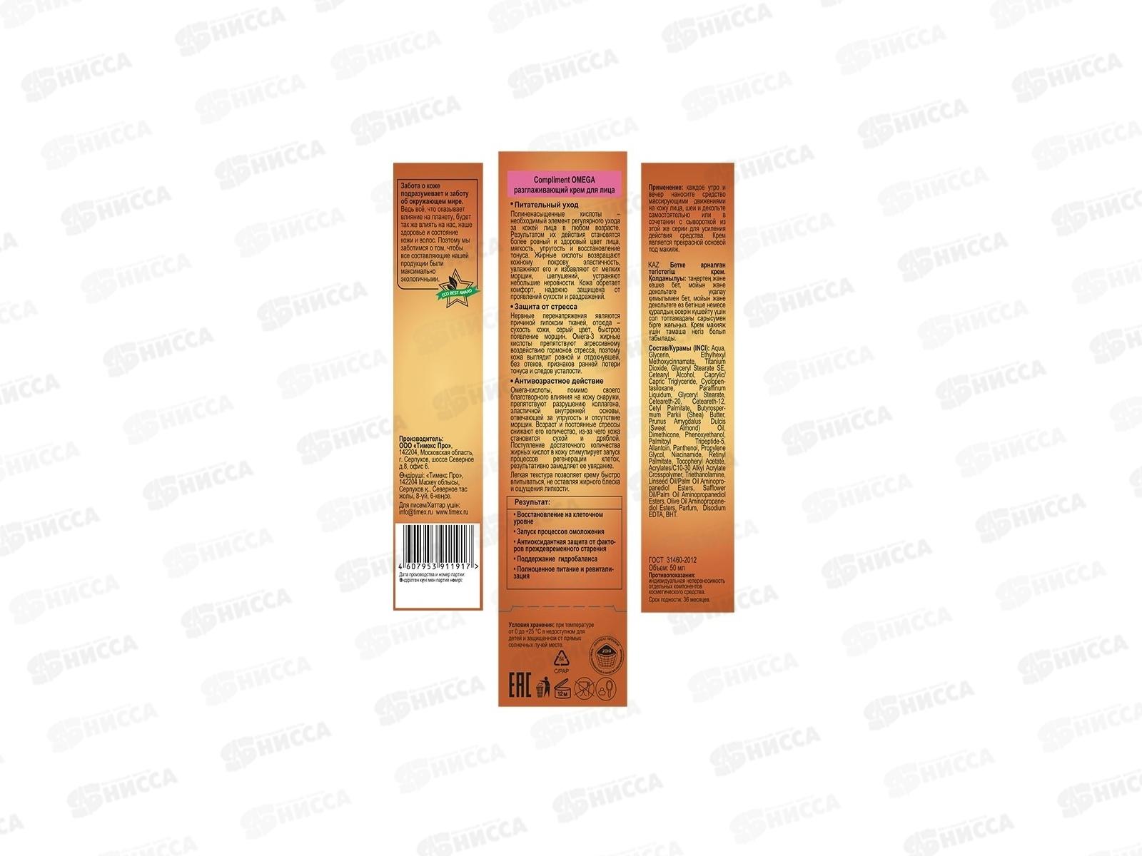 КОМПЛИМЕНТ OMEGA разглаживающий крем для лица 50мл *12
