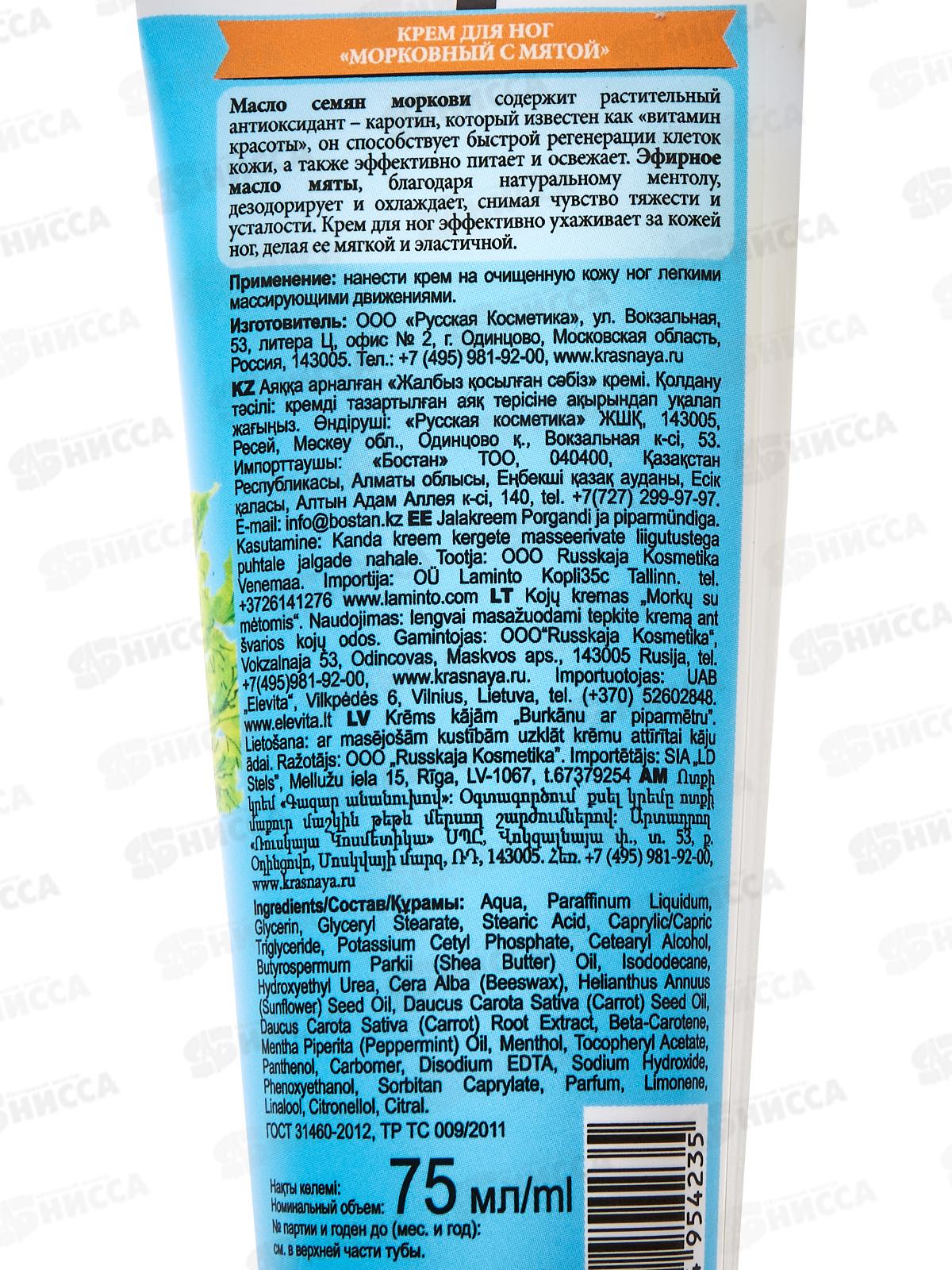 Бабушкина Аптека Крем для ног морковь с мятой 75мл *24