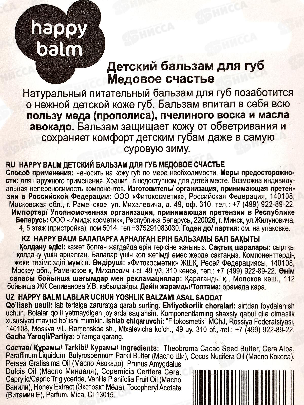 Happy Balm бальзам для губ Медовое счастье 3,6г *24