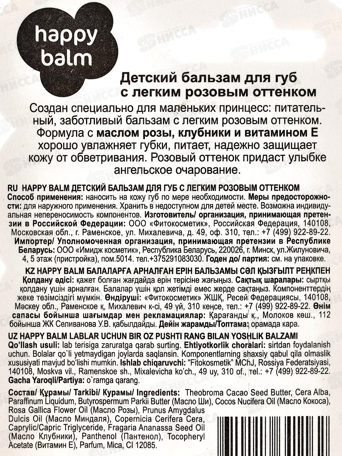 Happy Balm бальзам для губ Розовый оттенок 3,6г *24