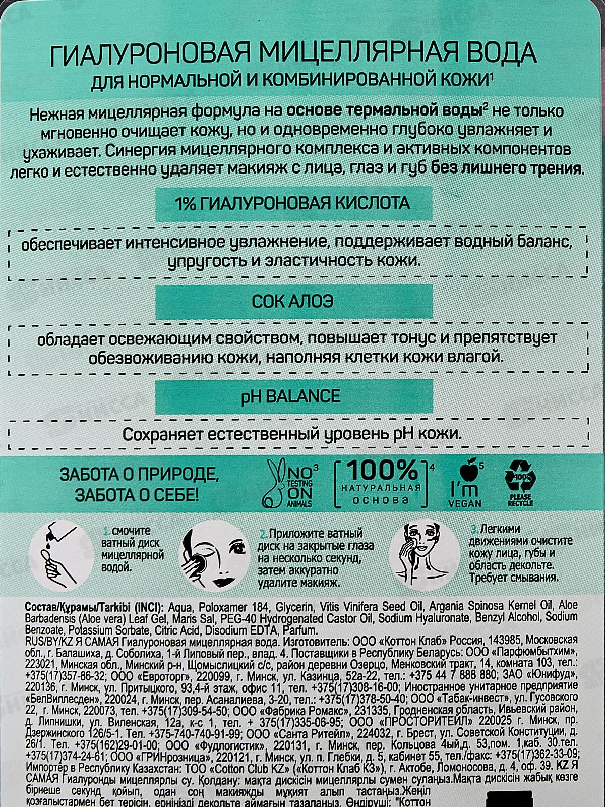 Я САМАЯ Мицеллярная вода Гиалуроновая 600мл *8