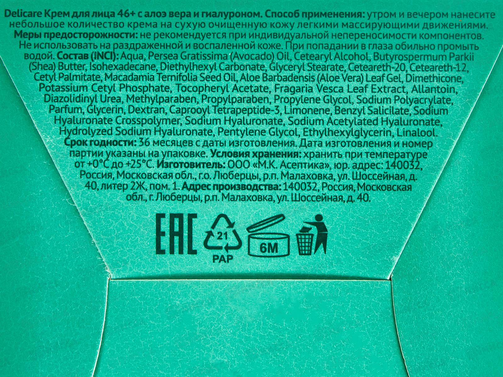 Delicare Крем для лица С АлоэВерГиал 46+ 8274 *20