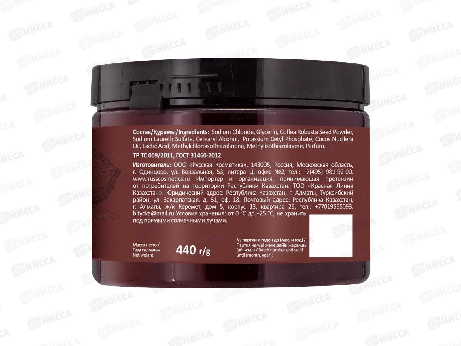 Состав: хлорид натрия, глицерин, порошок из семян кофе робуста, лауретсульфат натрия, цетеариловый спирт, цетилфосфат калия, масло кокоса, молочная кислота, метилхлоризотиазолинон, метилизотиазолинон. Отдушка.