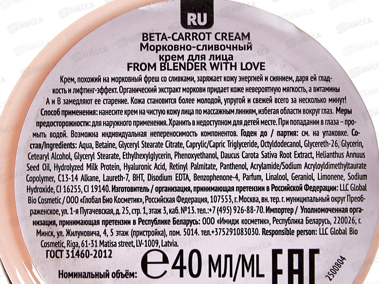 FROM BLENDER WITH LOVE Крем д/л Морковно-сливочный 40мл *24