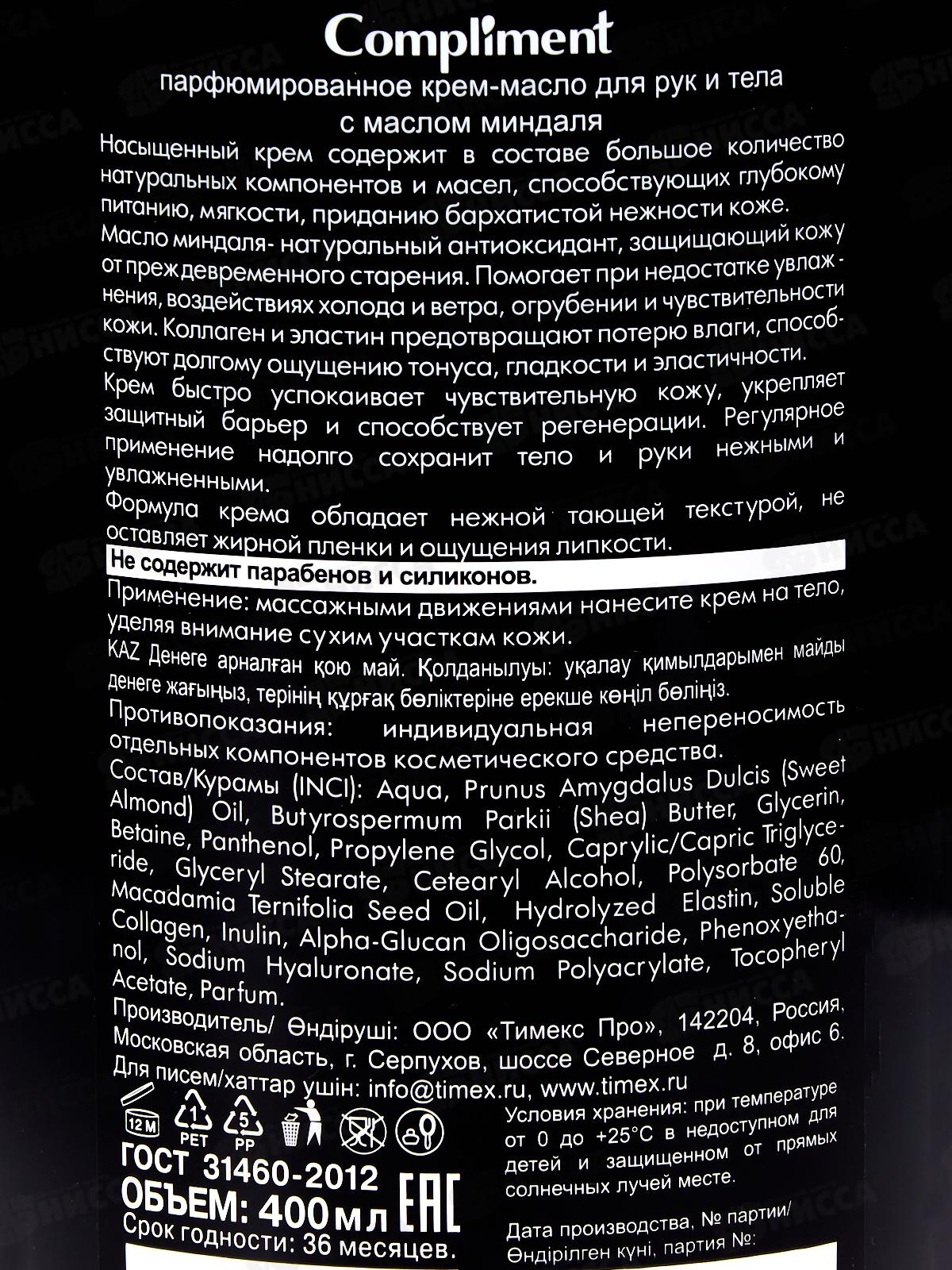 КОМПЛИМЕНТ Парфюмированное крем-масло для рук и тела с мас минд 400мл