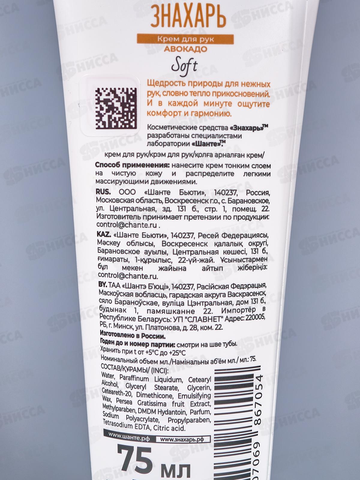 ЗНАХАРЬ крем д/рук Авокадо Soft 75мл *24 0619