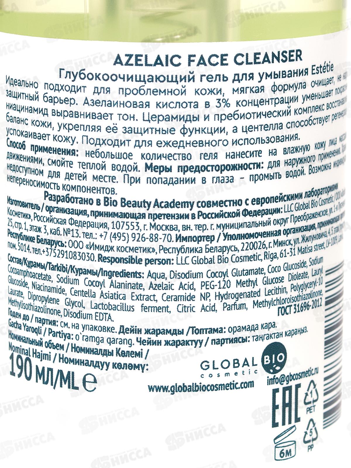 Estetie Гель Azelaic Face Cleanser для умывания глубокое очищение 190мл *12