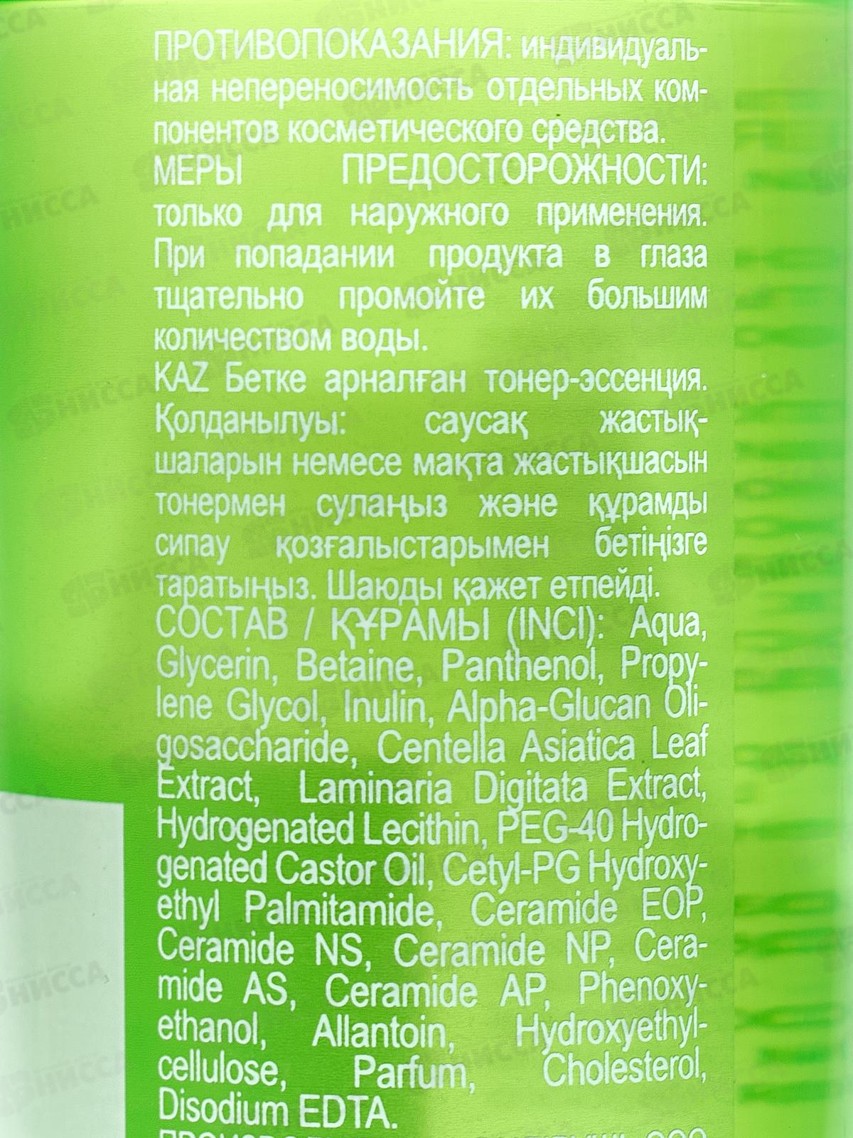 Состав: вода, Глицерин, Бетаин, Пантенол; Пропиленгликоль, Инулин, Альфа-глюкан олигосахарид; Экстракт листьев центеллы Азиатской, Экстракт ламинарии; гидрогенизированный лецитин; ПЕГ -40 гидрогенизированное касторовое масло; Цетил-PG Гидроксиэтилпальмитамид, Керамид EOP; Керамид NS, Керамид NP, Керамид AS; Керамид AP, Феноксиэтанол, Аллантоин; Гидроксиэтилцеллюлоза, Отдушка, Холестерол; динатрий ЭДТА
