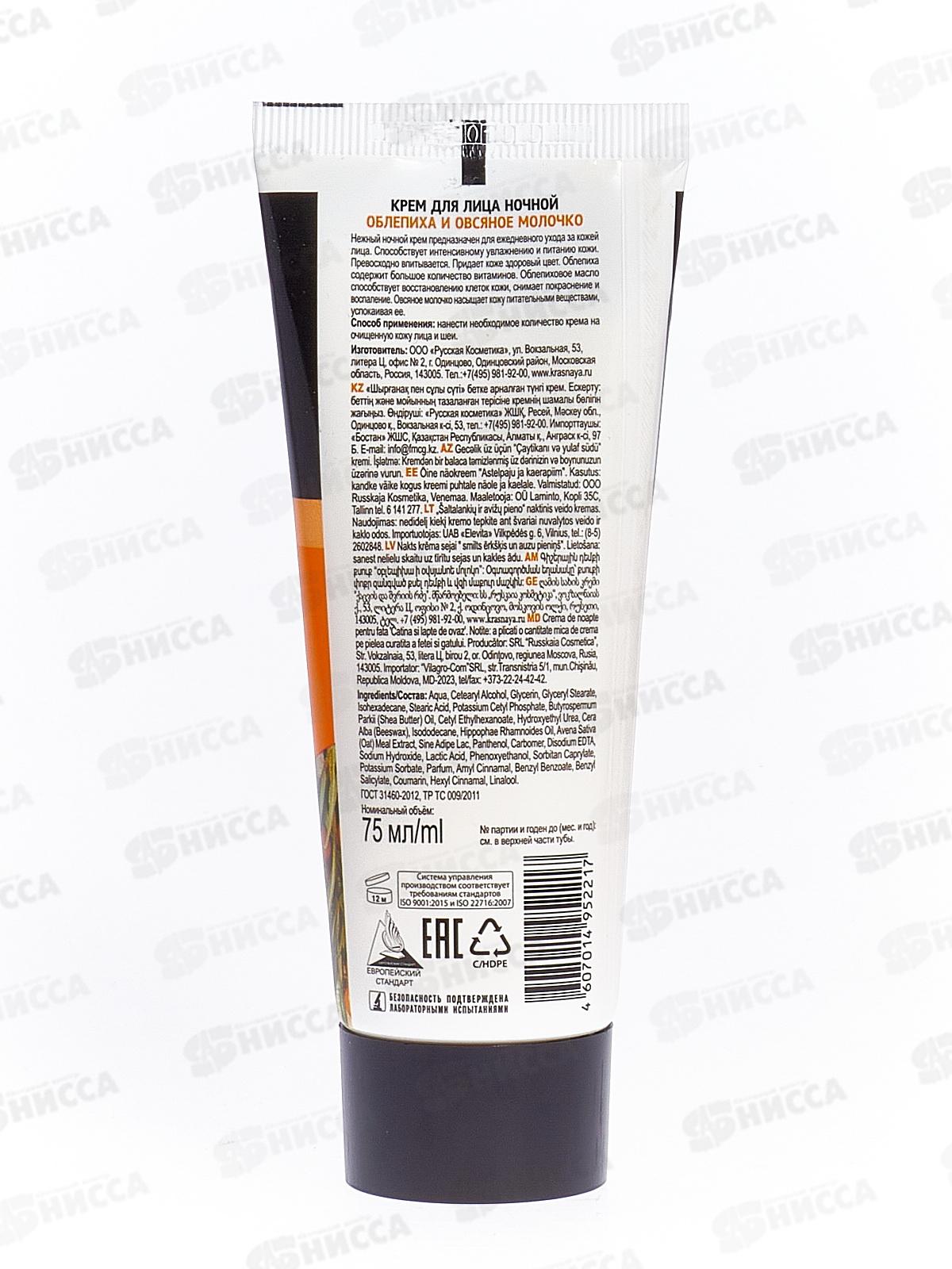 Нежный ночной крем предназначен для ежедневного ухода за кожей лица. Способствует интенсивному увлажнению и питанию кожи. Превосходно впитывается. Придает коже здоровый цвет. Облепиха содержит большое количество витаминов. Облепиховое масло способствует восстановлению клеток кожи, снимает покраснение и воспаление. Овсяное Молочко для тела насыщает кожу питательными веществами, успокаивая ее.