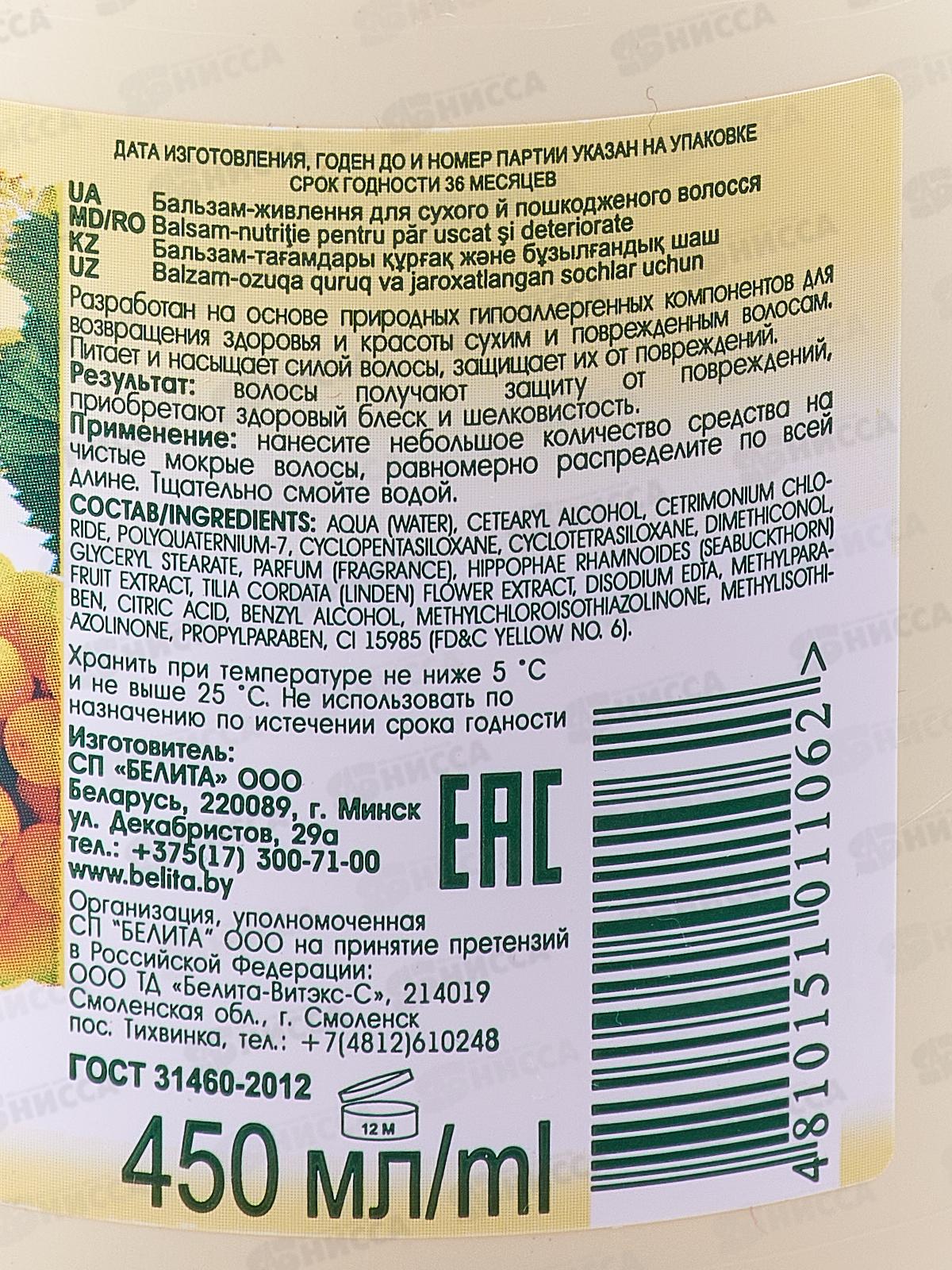 Облепиха & Липовый цвет бальзам-питание для сухих и поврежденных волос 450мл *18