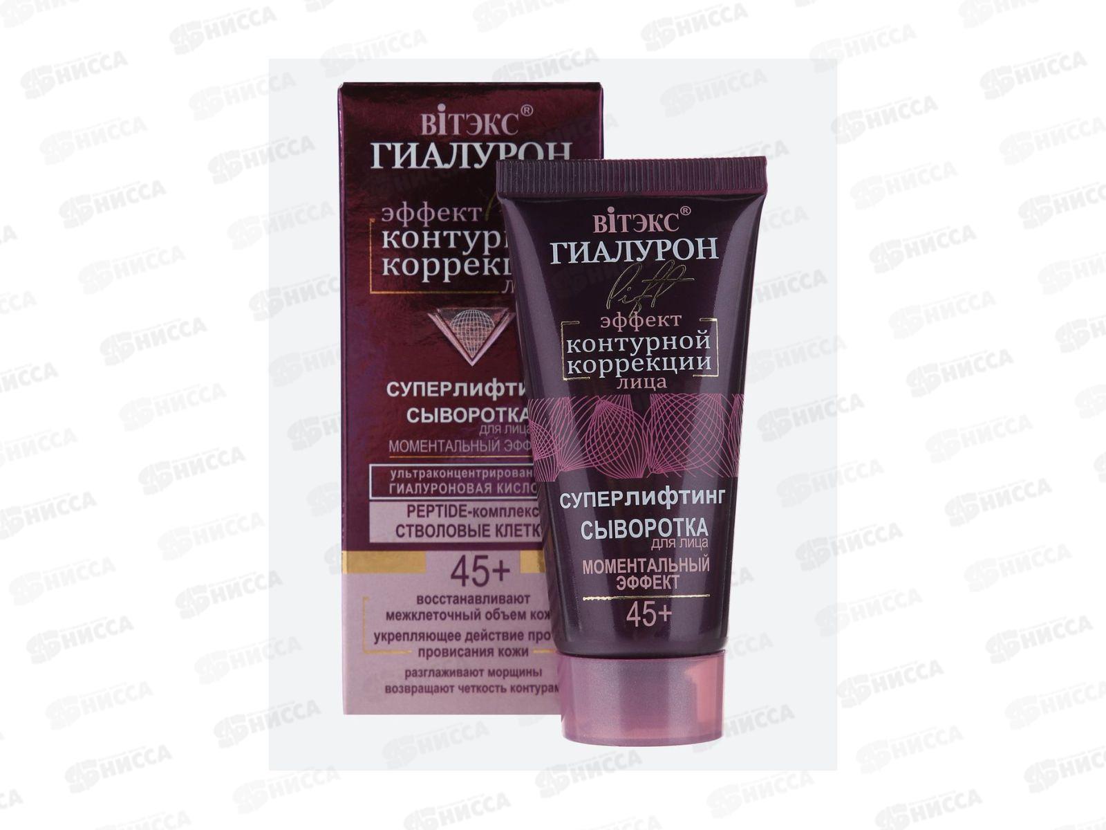 Сыворотка для лица Витэкс Гиалурон Lift Моментальный эффект создаст идеальные контуры лица, оказывает моментальный лифтинг-эффект, оказывает воздействие сразу на 5 лицевых зон: сокращает морщины на лбу, вокруг глаз и губ, уменьшает носогубные складки, восстанавливает линию шеи, подтягивая кожу.