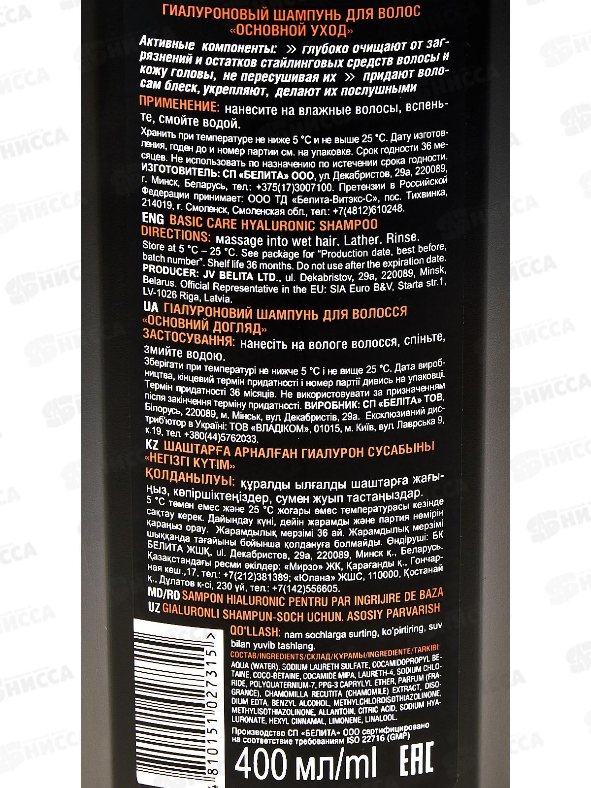 Belita For Men Шампунь для волос Основной уход 400мл *10