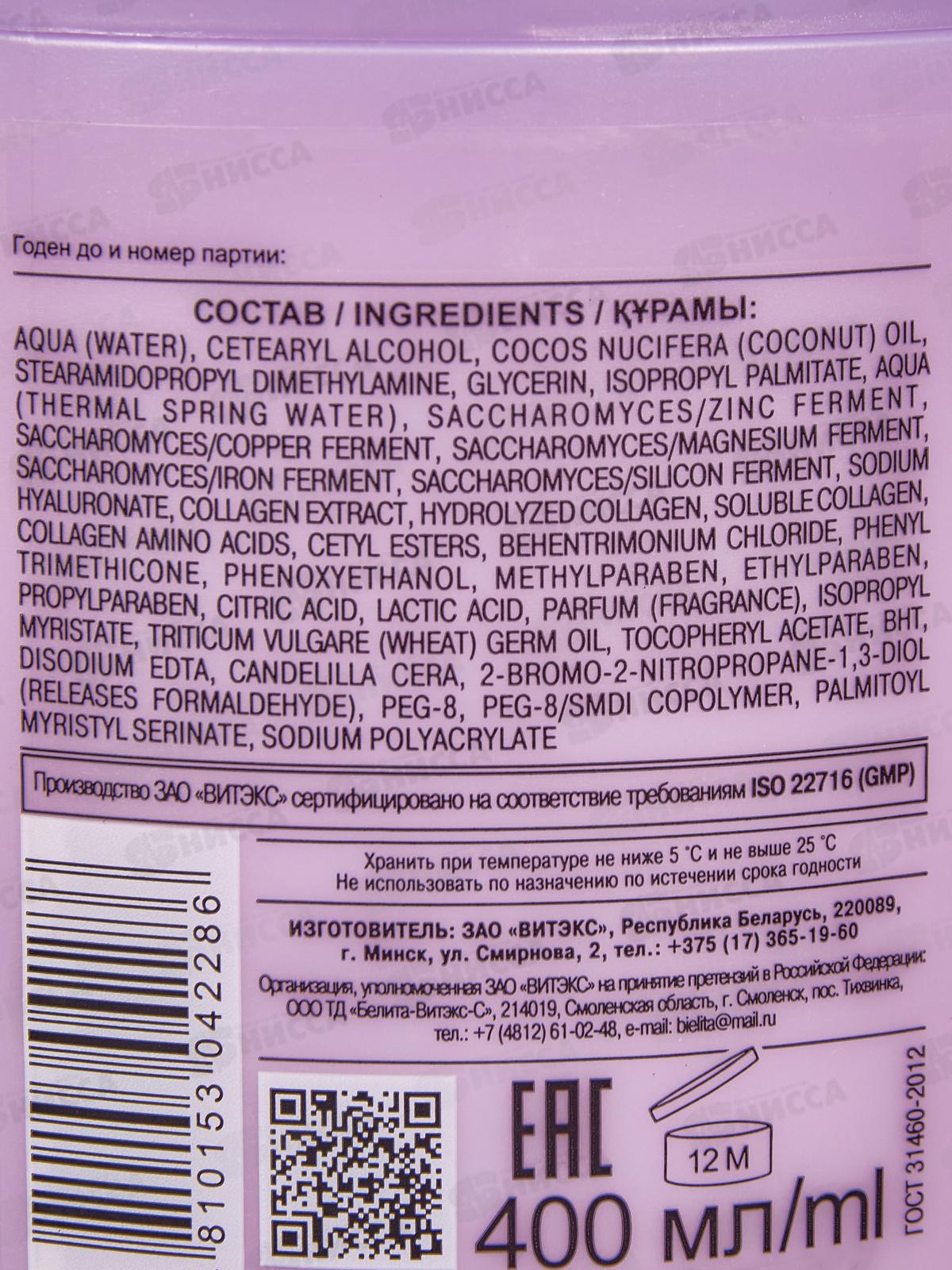 Насыщенная экспресс-маска с богатым составом компонентов позволяет преобразить даже очень поврежденные, тонкие и сухие волосы всего за несколько минут. Состав: вода, цетеариловый спирт, масло Cocos Nucifera (кокосовое), стеарамидопропилдиметиламин, глицерин, изопропилпальмитат, термальная вода, фермент сахаромицет / цинк, фермент сахаромицет / медь, фермент сахаромицет / магний, фермент сахаромицет / железо, фермент сахаромицет / кремний, гиалуронат натрия, экстракт коллагена, гидролизованный коллаген, растворимый коллаген, аминокислоты коллагена, цетиловые эфиры, хлорид бегентримония, фенилтриметикон, феноксиэтанол, метилпарабен, этилпарабен, пропилпарабен, лимонная кислота, молочная кислота, парфюмерная композиция, изопропилмиристат, масло зародышей Triticum vulgare (пшеницы), токоферилацетат, БГТ, ЭДТА динатрия, канделильский воск, 2-бром-2-нитропропан-1,3-диол, ПЭГ-8, сополимер ПЭГ-8 / СМДИ, пальмитоилмиристилсиринат, полиакрилат натрия.