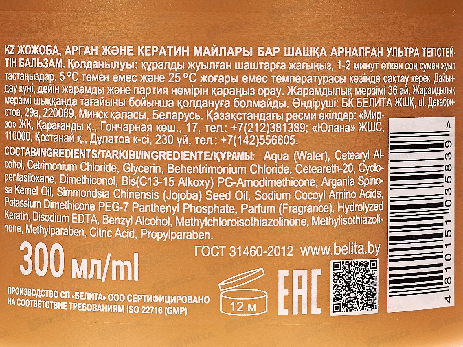 Состав: с маслом жожоба, арганы и кератином