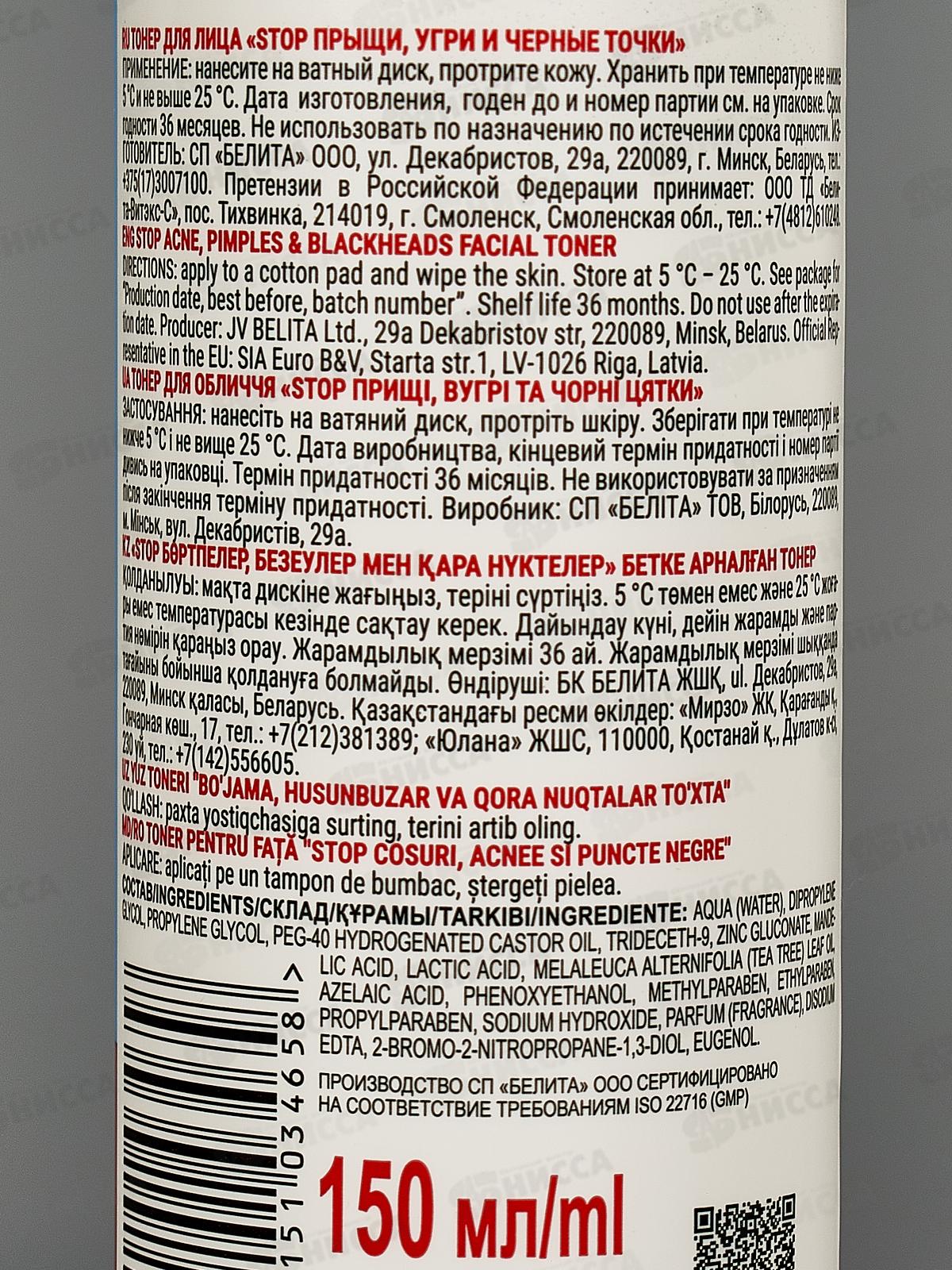 АНТИ АКНЕ Тонер для лица Стоп прыщи, угри и черные точки 150мл *15