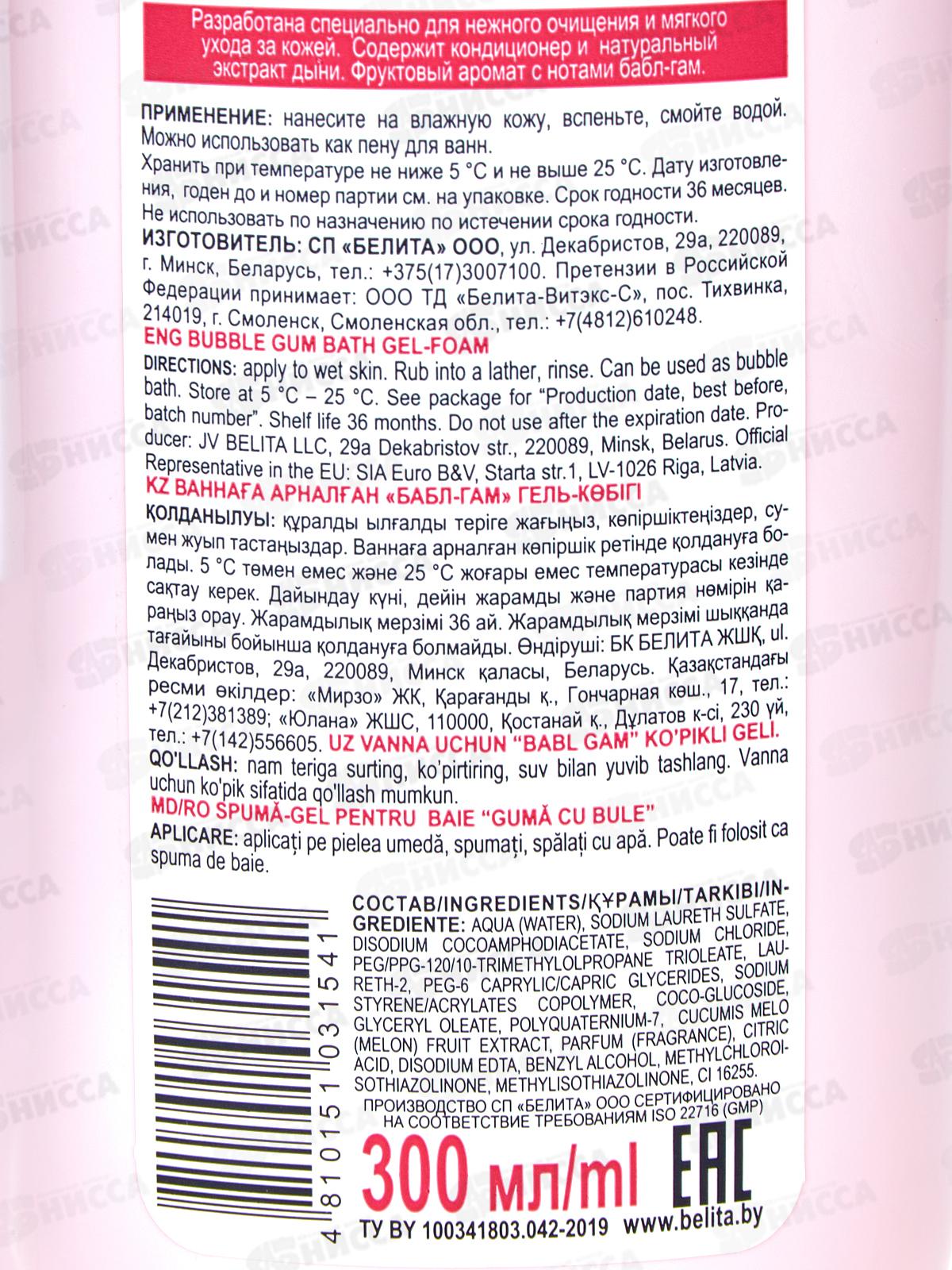 Belita Kids Гель-пена д/ванны Бабл Гам 300мл *12