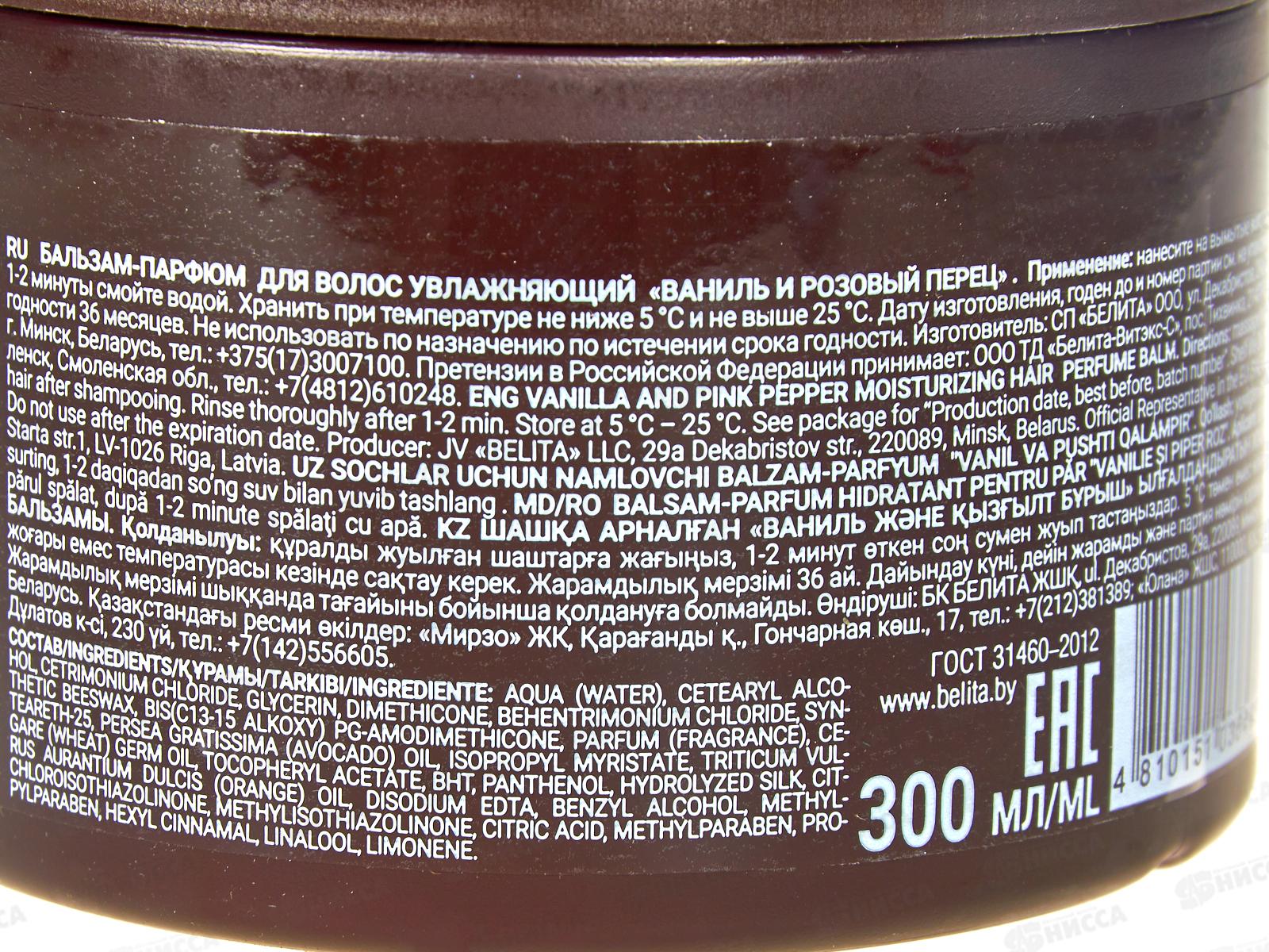 Завершите уход с бальзам-парфюмом «Ваниль и розовый перец», который глубоко увлажняет и питает волосы, придавая им мягкость и блеск. Его ароматическая композиция включает верхние ноты лаванды, мандарина и бергамота, ноты сердца из апельсинового цвета, жасмина самбака и орхидеи, а также базовые ноты ванили, бобов тонка, амбры и ветивера. Состав: Aqua (Вода), Цетеариловый спирт, хлорид цетримония, Глицерин, Диметикон, Хлорид Бехентримония, Синтетический пчелиный воск, Бис (Алкокси С13-15) PG-амодиметикон, Парфюмерия (отдушка), Цетеарет-25, Масло Персея щедрого (авокадо), изопропилмиристат, Масло зародышей пшеницы Triticum Vulgare, Токоферил Ацетат, BHT, Пантенол, гидролизованный шелк, цитрусовые Aurantium Dulcis (апельсин) Масло, Динатриевый ЭДТА, Бензиловый спирт, Метилхлоризотиазолинон, Метилизотиазолинон, Лимонная кислота, Метилпарабен, Пропилпарабен, Гексилциннамал, Линалоол, Лимонен.