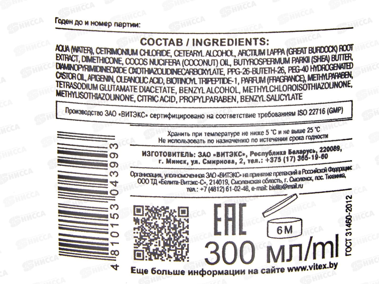 Укрепляющий бальзам-интенсив – это уникальное сочетание природных и высоконаучных современных компонентов, которые эффективно уменьшают выпадение и одновременно усиливают рост здоровых, крепких волос. Состав: вода, хлорид цетримония, цетеариловый спирт, экстракт корня Arctium Lappa (лопуха), диметикон, масло Cocos Nucifera (кокосовое), масло Butyrospermum parkii (ши), окситиазолидинкарбоксилат диаминоприримидиноксида, ППГ-26-бутет-26, ПЭГ-40 гидрогенизированное касторовое масло, апигенин, олеаноловая кислота, биотиноилтрипептид-1, парфюмерная композиция, метилпарабен, глутамат диацетат тетранатрия, бензиловый спирт, метилхлоризотиазолинон, метилизотиазолинон, лимонная кислота, пропилпарабен, бензилсалицилат.