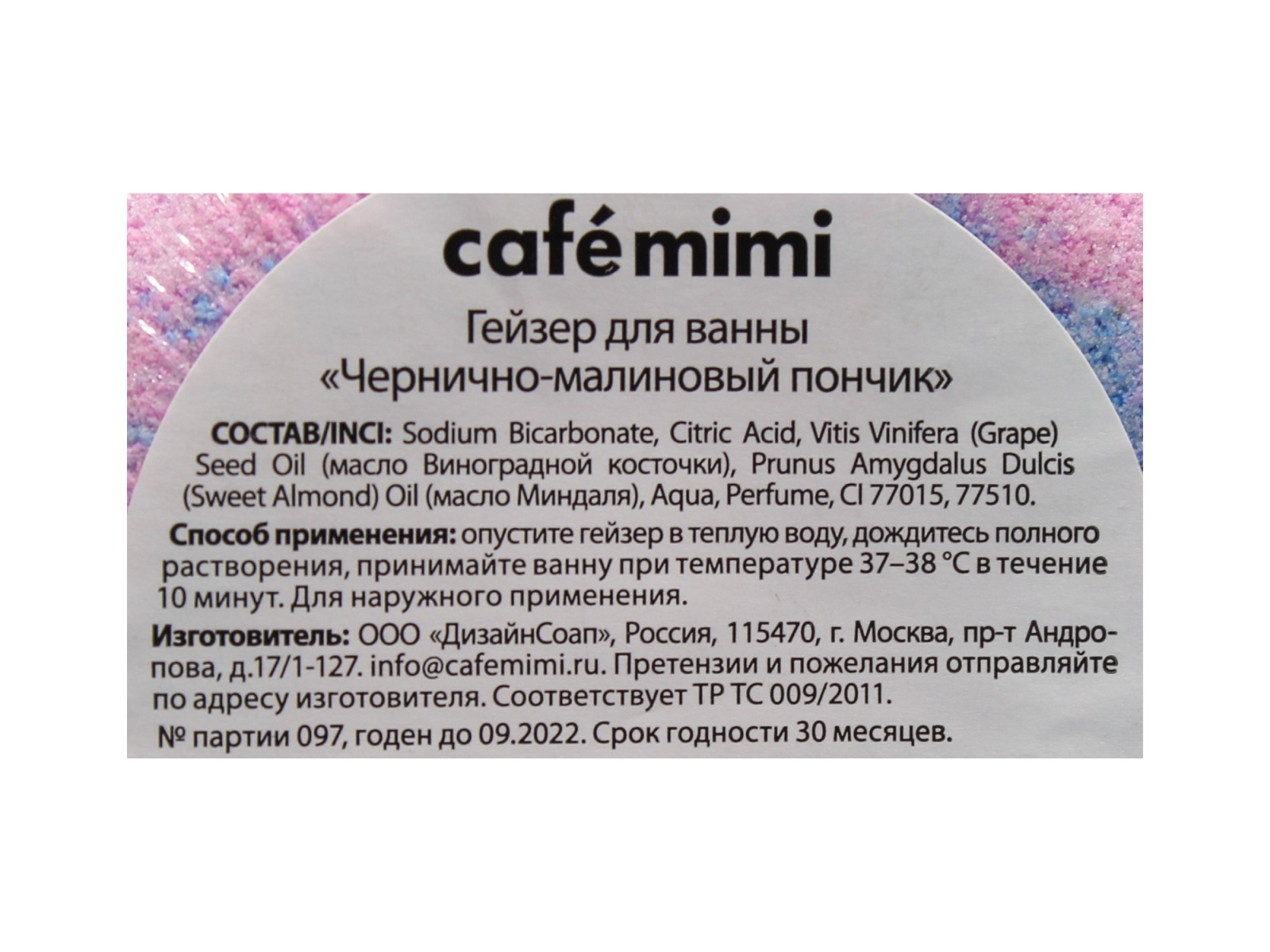 Кафе Мими Гейзер для ванны Чернично-малиновый пончик 140г 516111 *12