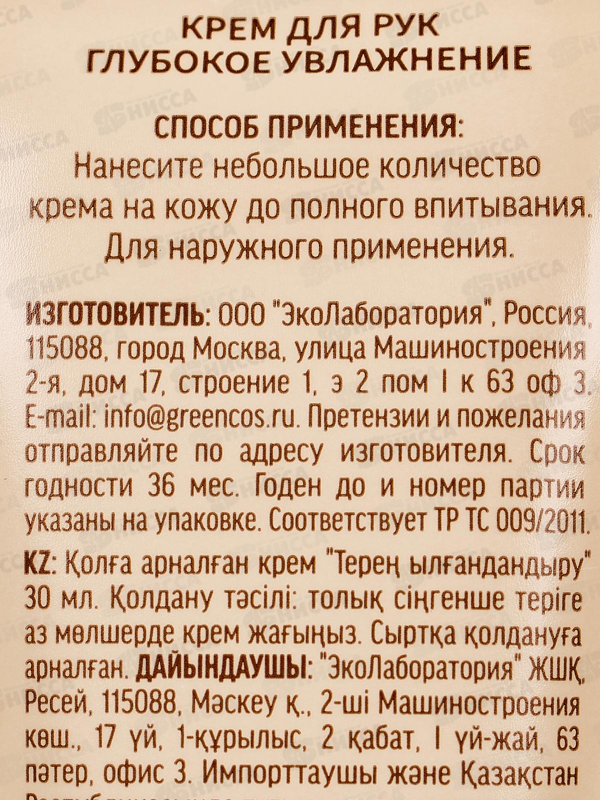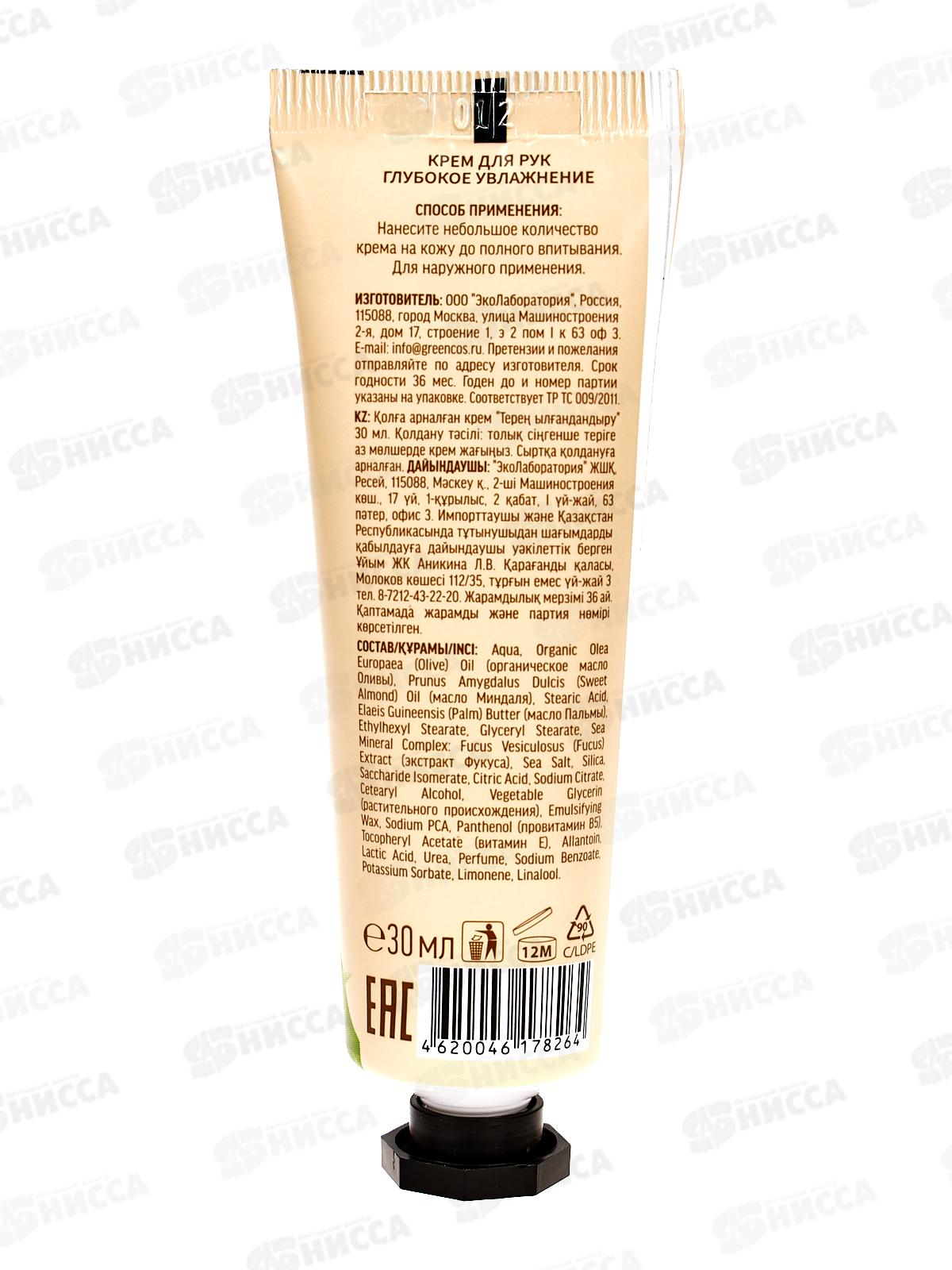 ЭкоЛаборатория Крем для рук Глубокое увлажнение 30мл 214205 *20