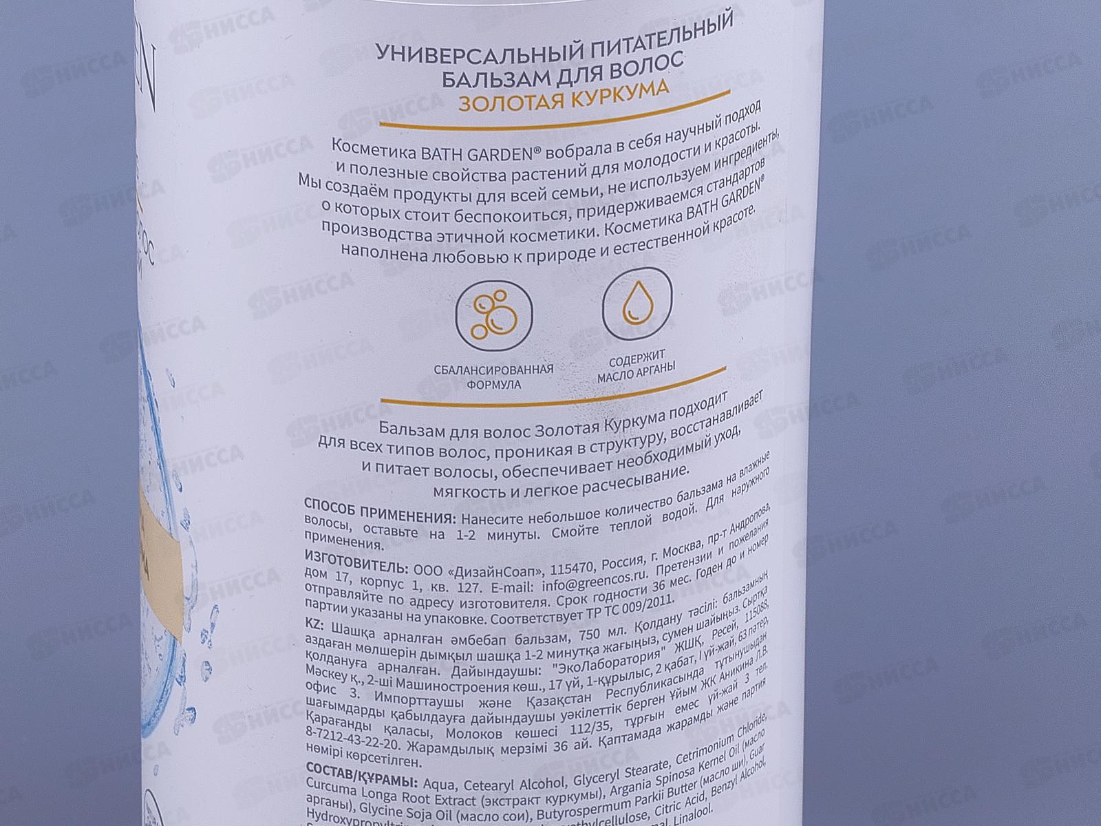 BATH GARDEN Бальзам питательный для волос Золотая куркума 750мл 411116 *6