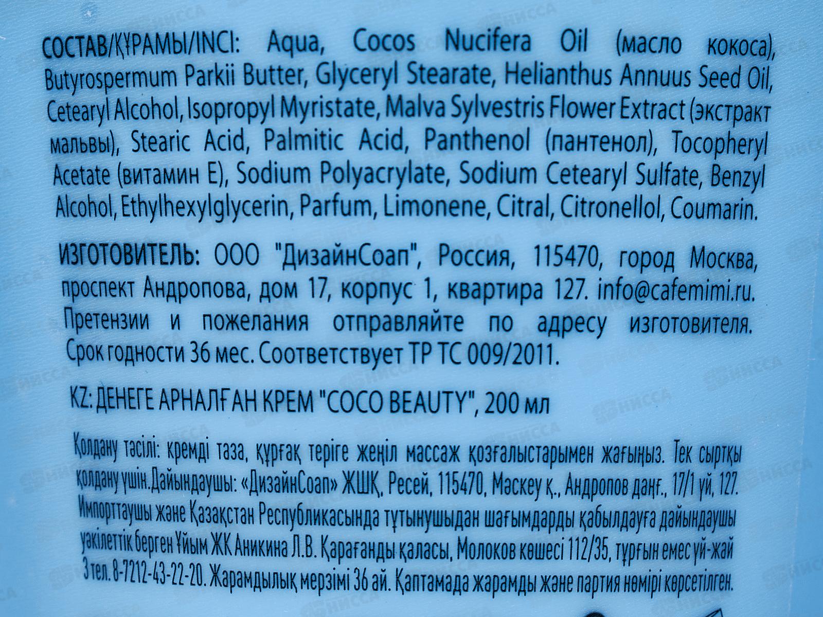 Кафе Мими CLS Крем для тела Coco Beauti 200мл 562522 *12
