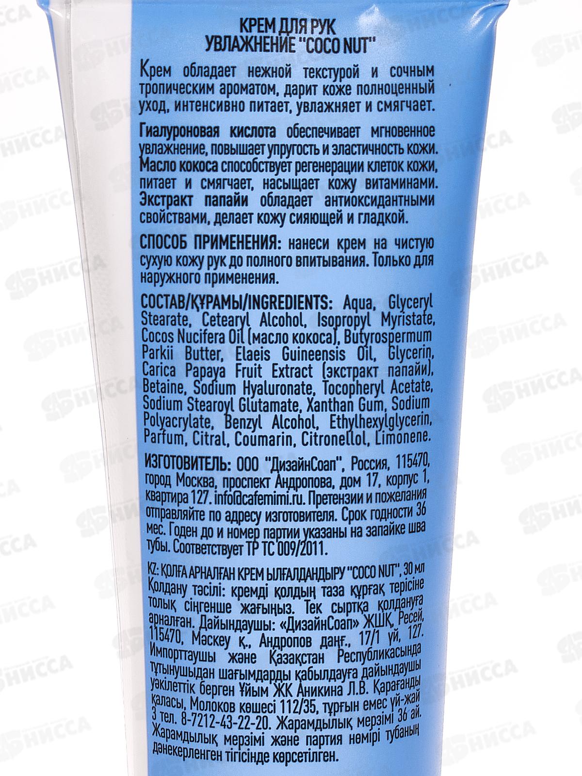 Кафе Мими CLS Крем для рук Coco Nut 30мл Смягчение 514212 *20