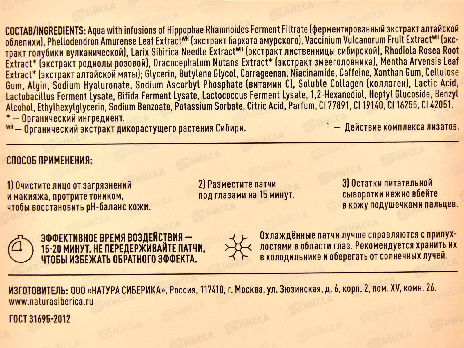 Natura Siberica LB Патчи для глаз с коллагеном и витам С 60шт 1406 *12
