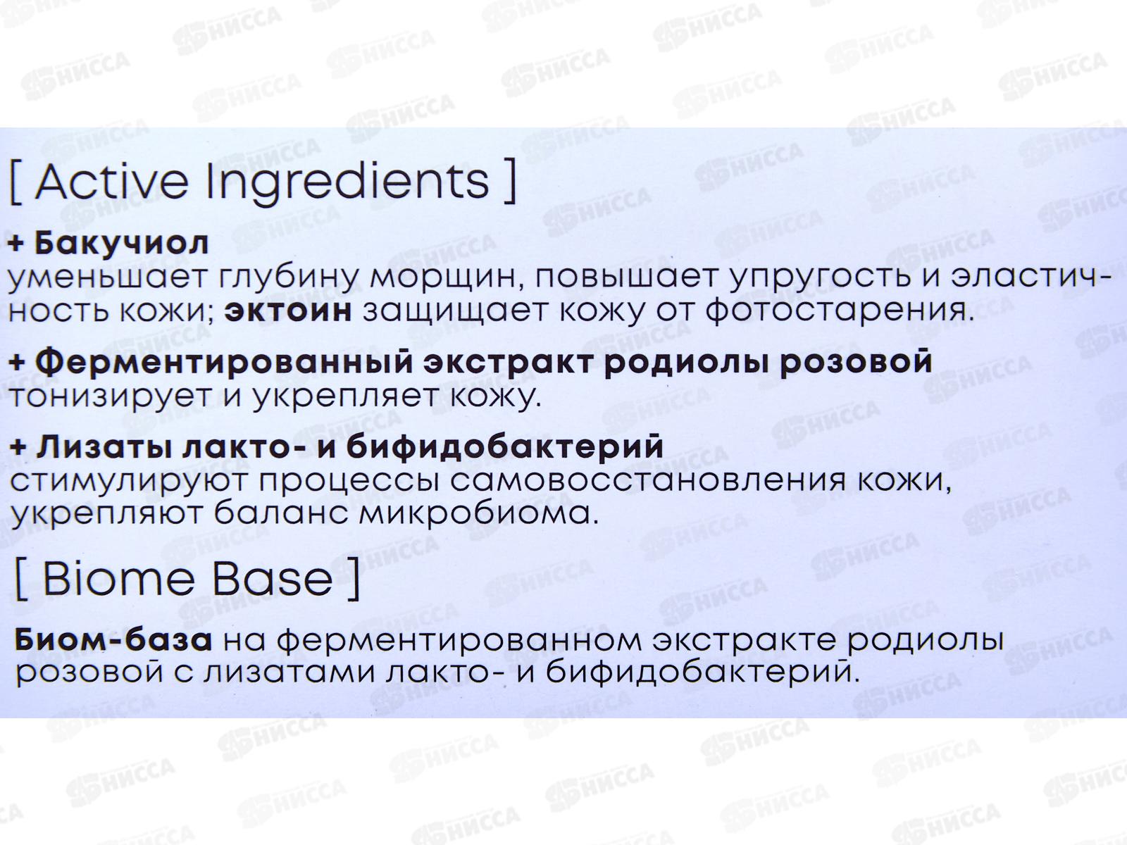 Состав: вода с экстрактами ферментированного экстракта родиолы розовой, экстракт тимьяна сибирского, экстракт плодов рябины сибирской, экстракт плодов лимонника нанайского, экстракт листа шалфея лекарственного, экстракт корня байкальского шлемника, экстракт цветков календулы лекарственной, глицерин, бутиленгликоль, каррагинан, ниацинамид, кофеин, гептилглюкозид, ксантановая камедь, камедь целлюлозы, альгин, гиалуронат натрия, бакучиол, эктоин, лизат фермента лактобактерий, лизат фермента бифидобактерий, лизат фермента лактококков, 1,2-гександиол, бензиловый спирт, этилгексилглицерин, бензоат натрия, сорбат калия, лимонная кислота, отдушка, CI 77891, CI 16255, CI 42051
