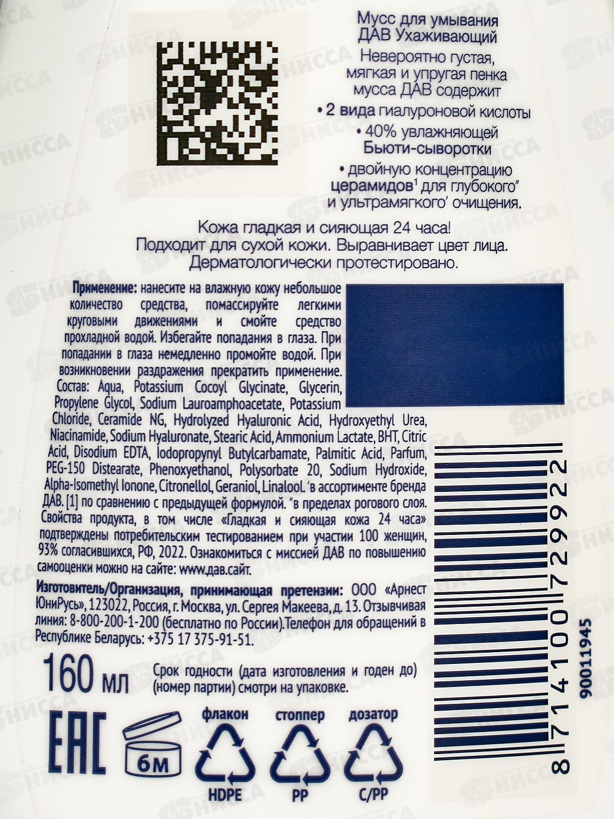 ДАВ Мусс для умывания Ухаживающий 160мл*10