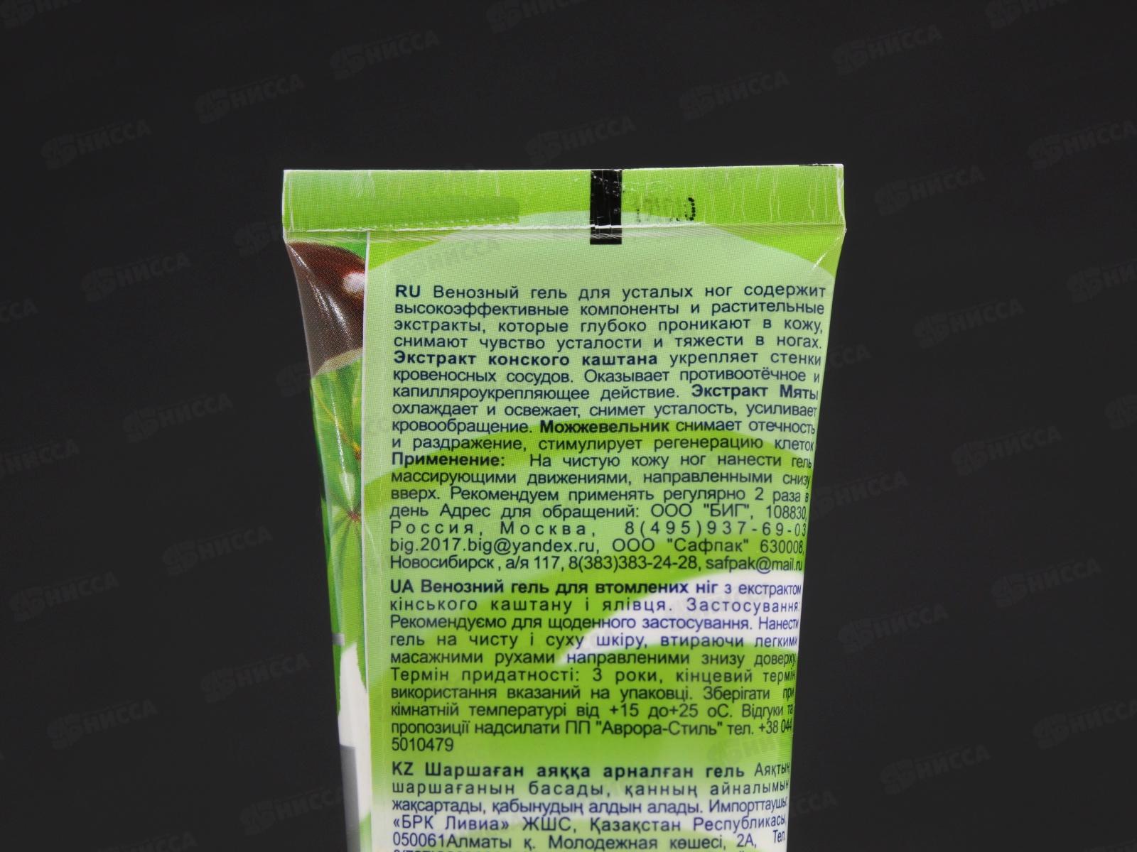 Венозный гель Для уставших ног с экстрактом конского каштана и можжевельника снимает усталость и тяжесть в ногах, укрепляет кровеносные сосуды, устраняет воспалительные процессы.