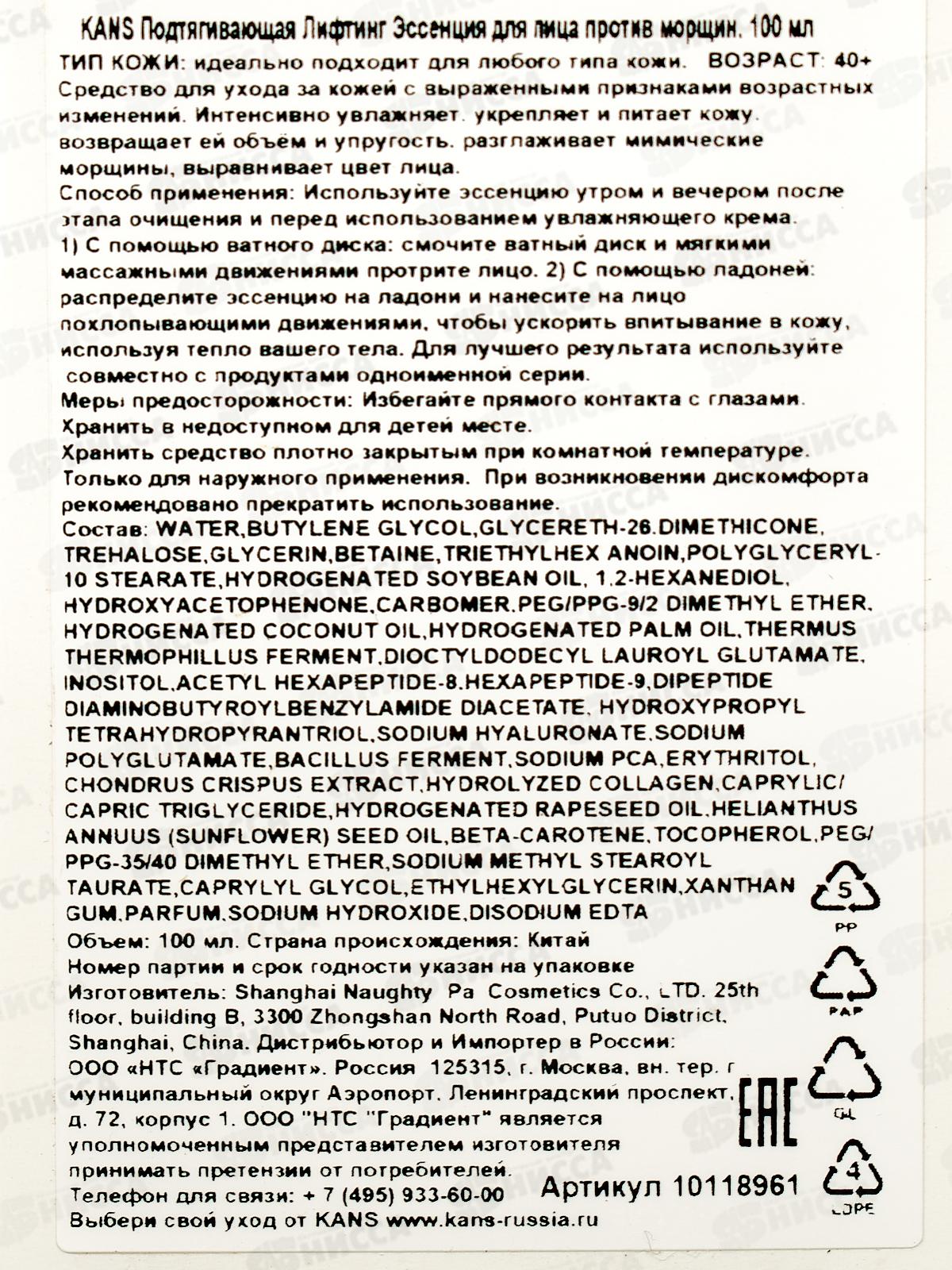 KANS Подтягивающий лифтинг эссенсия для лица против морщин 100мл