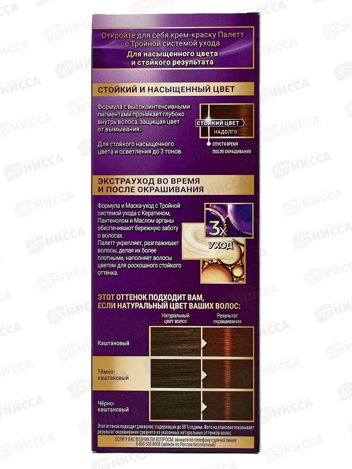 Откройте для себя Стойкую крем-краску Палетт с Тройной системой ухода с Кератином, Пантенолом, Nutri-маслом, обеспечивающей бережную заботу о волосах. Формула с высокоинтенсиными пигментами глубоко проникает в структуру волоса, защищая цвет от вымывания. Для стойкого и интенсивного цвета. Ухаживающая краска, обогащенная пленительным цветом Ваших волос, удовлетворяющим все ваши потребности: насыщенный, экстрастойкий оттенок, ухоженные волосы, даже при регулярном окрашивании, живой блеск. Надежное закрашивание седины.