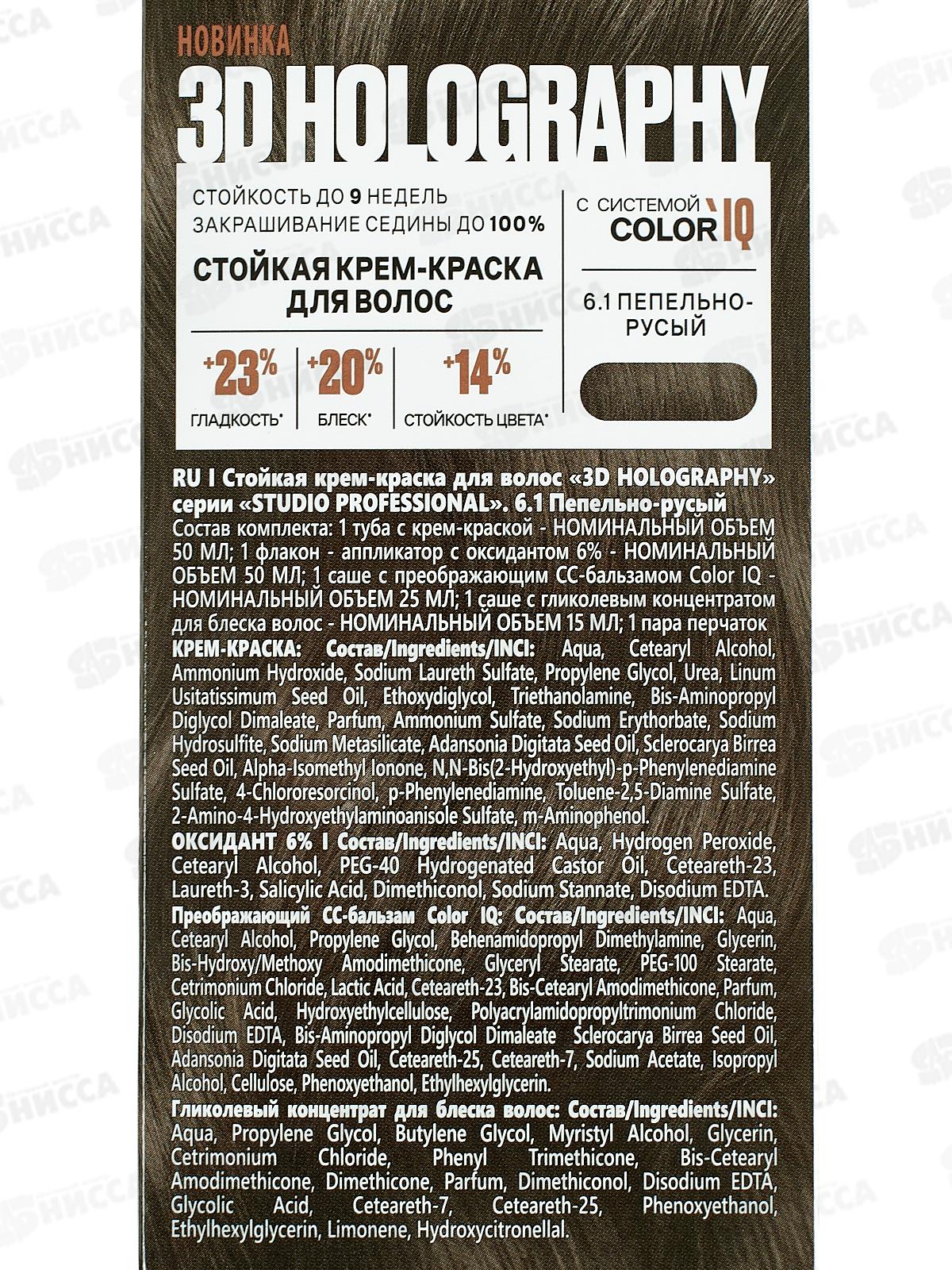 STUDIO 3D голографик крем-краска 6,1 пепельно-русый *6