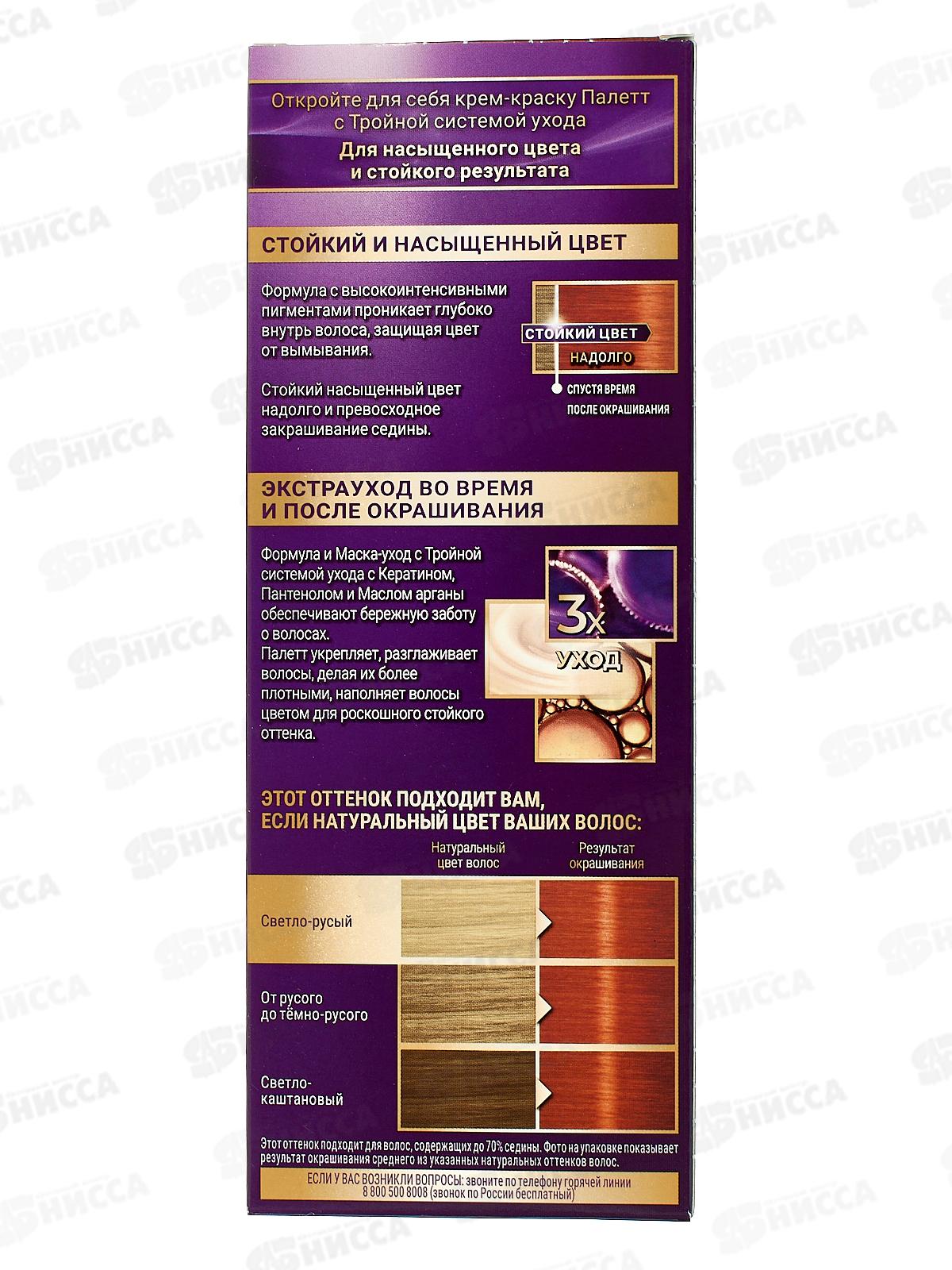 Откройте для себя Стойкую крем-краску Палетт с Тройной системой ухода с Кератином, Пантенолом, Nutri-маслом, обеспечивающей бережную заботу о волосах. Формула с высокоинтенсиными пигментами глубоко проникает в структуру волоса, защищая цвет от вымывания. Для стойкого и интенсивного цвета. Ухаживающая краска, обогащенная пленительным цветом Ваших волос, удовлетворяющим все ваши потребности: насыщенный, экстрастойкий оттенок, ухоженные волосы, даже при регулярном окрашивании, живой блеск. Надежное закрашивание седины.